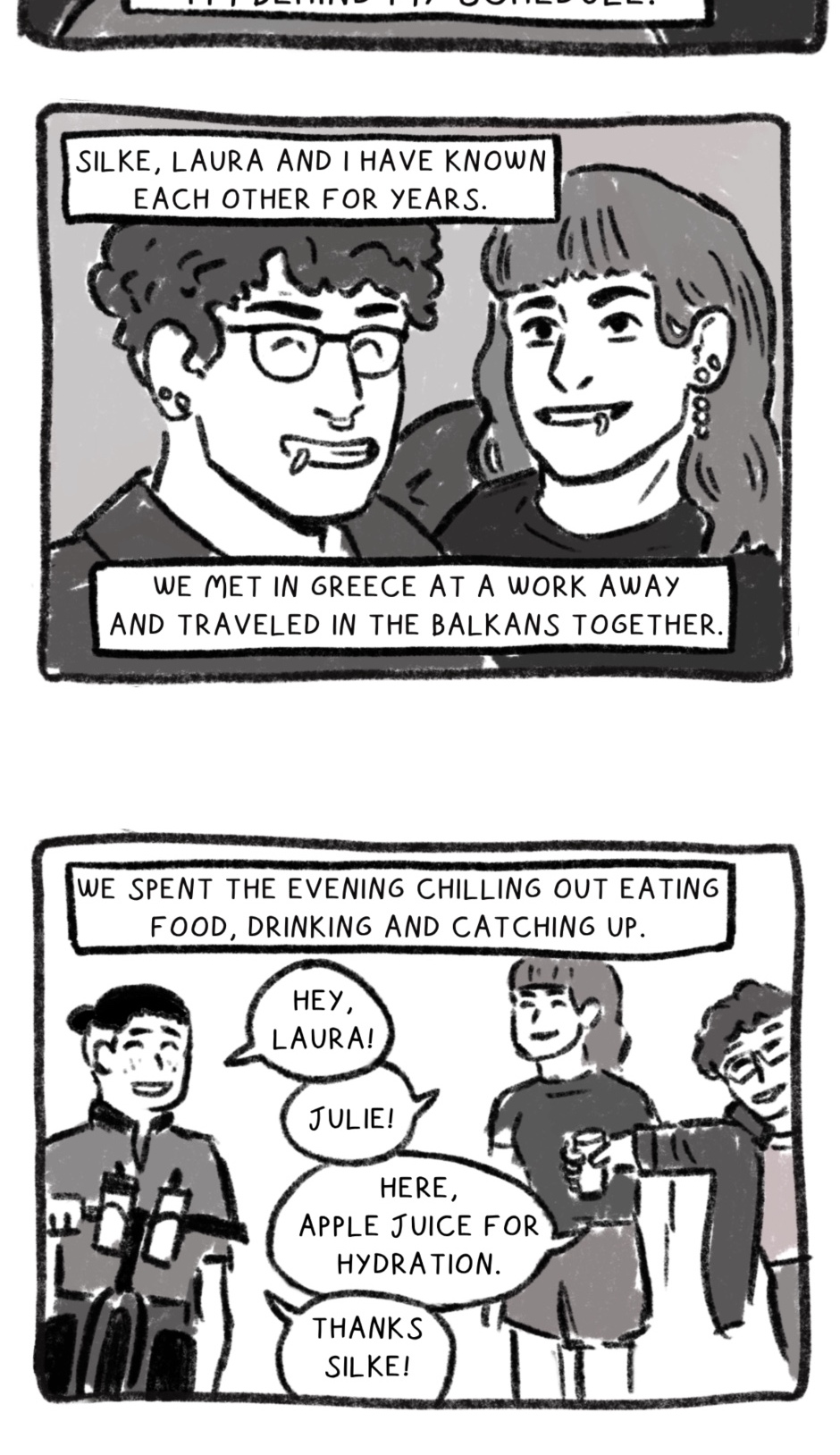 This autobiographical comic follows Julie, an optimistic and experienced adventurer travel forth into the unknown, over the alps, and finally to Rome. Follow as she finds herself while getting lost, through the highs of the alps and the lows of being accosted by mysterious animals.