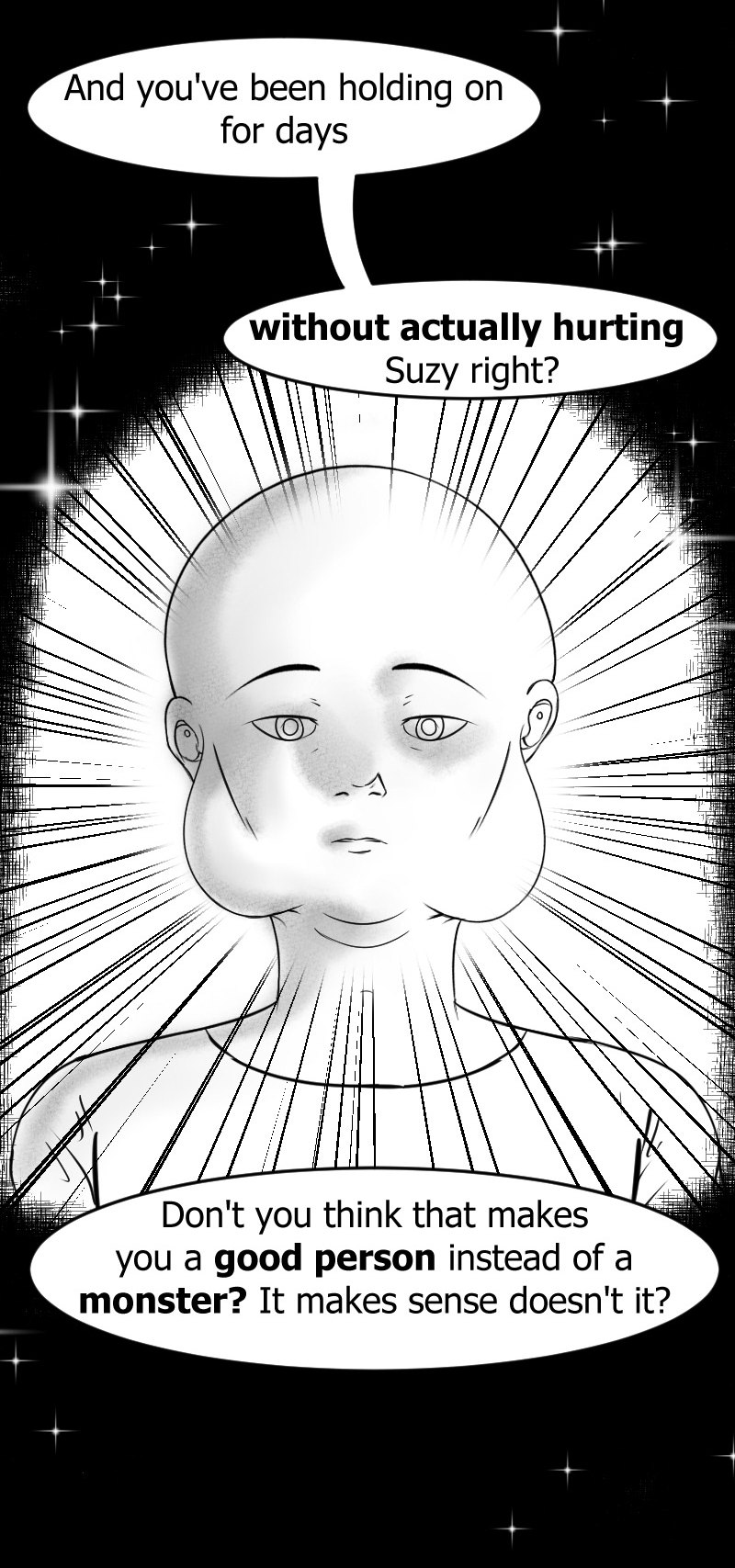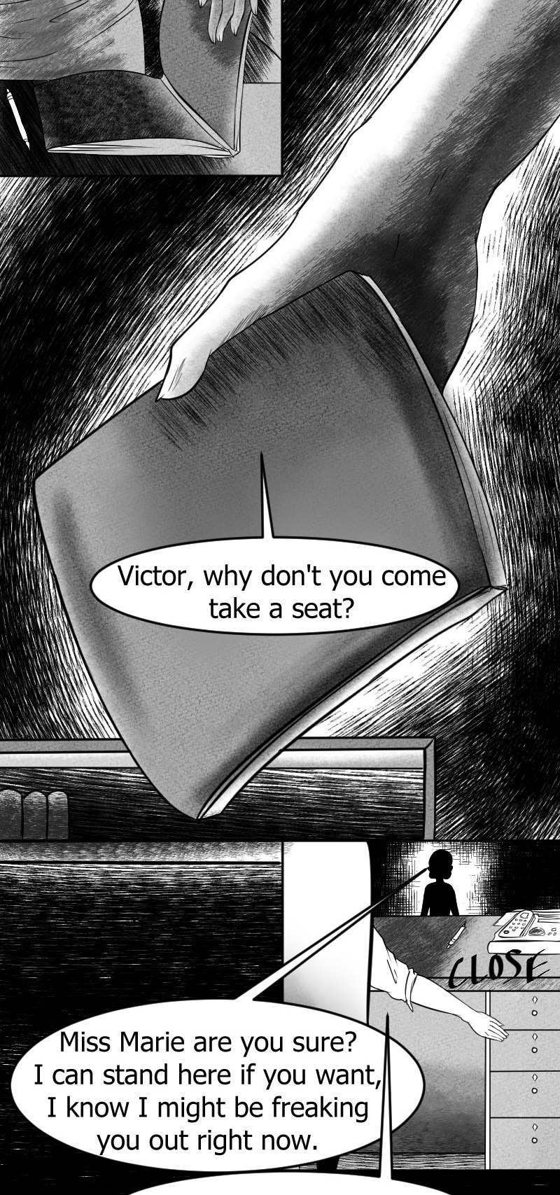 I have short attention span and I can get bored drawing same angles and stuffs multiple times soooooo I tried to be as artistic as I can with the representation of certain scenes. Yeeeehaaa