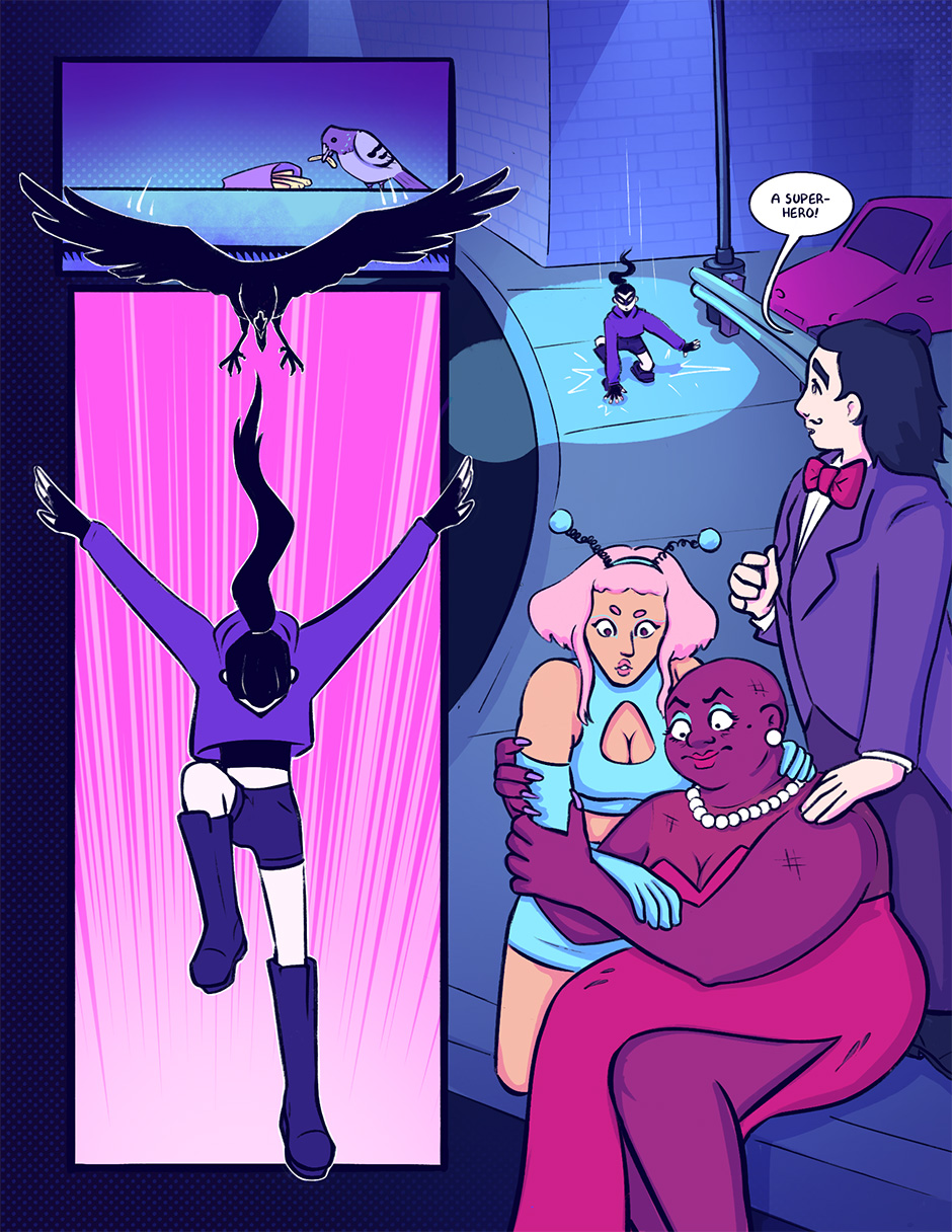 Liz Heart and the Raven is a coming-of-age superhero comic about two teenagers falling in love and trying to save the world.