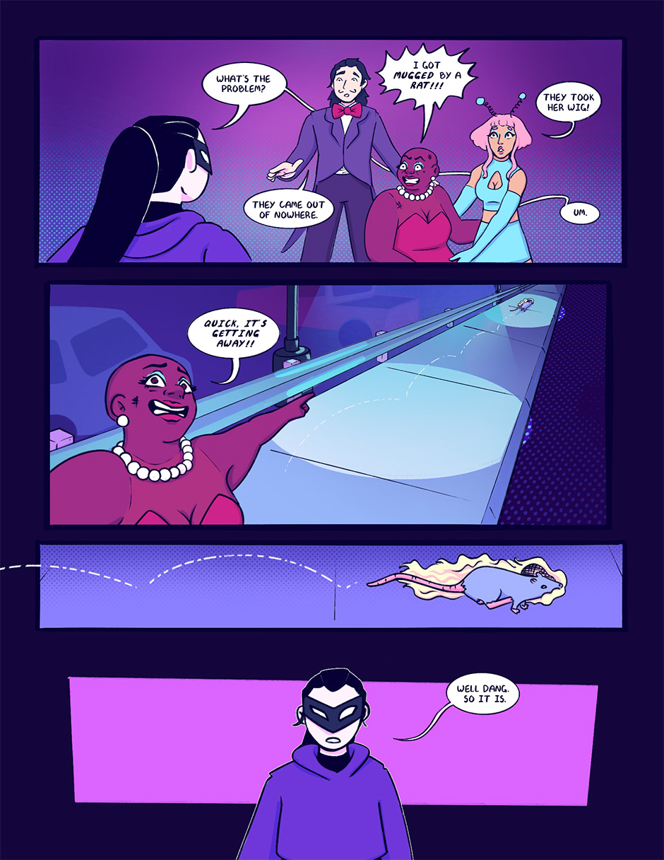 Genesis Grater lives in a penthouse looking over the city. Her family is a lot of things - wealthy, powerful, dysfunctional - but Genesis' growing powers, and her newfound hobby of masked vigilantism, remain a secret. The Raven is free.