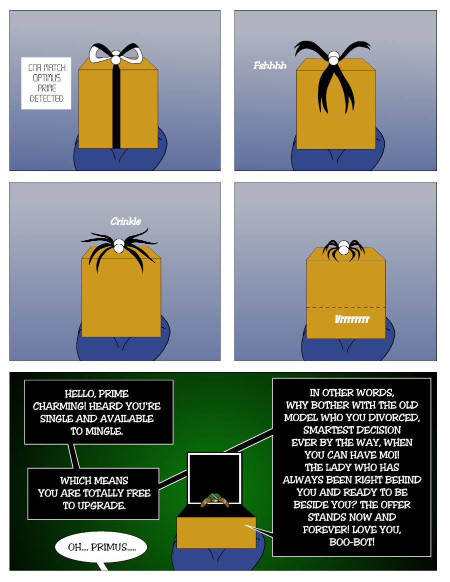 War drove them apart, but peace brought them back together. Four years after Autobots and Decepticons finally made peace, Optimus Prime and Elita-One have decided to remarry and have the wedding they always dreamed of having, but while all drama in their relationship has been addressed, it still seems to attract a lot of drama as well as hilarity.