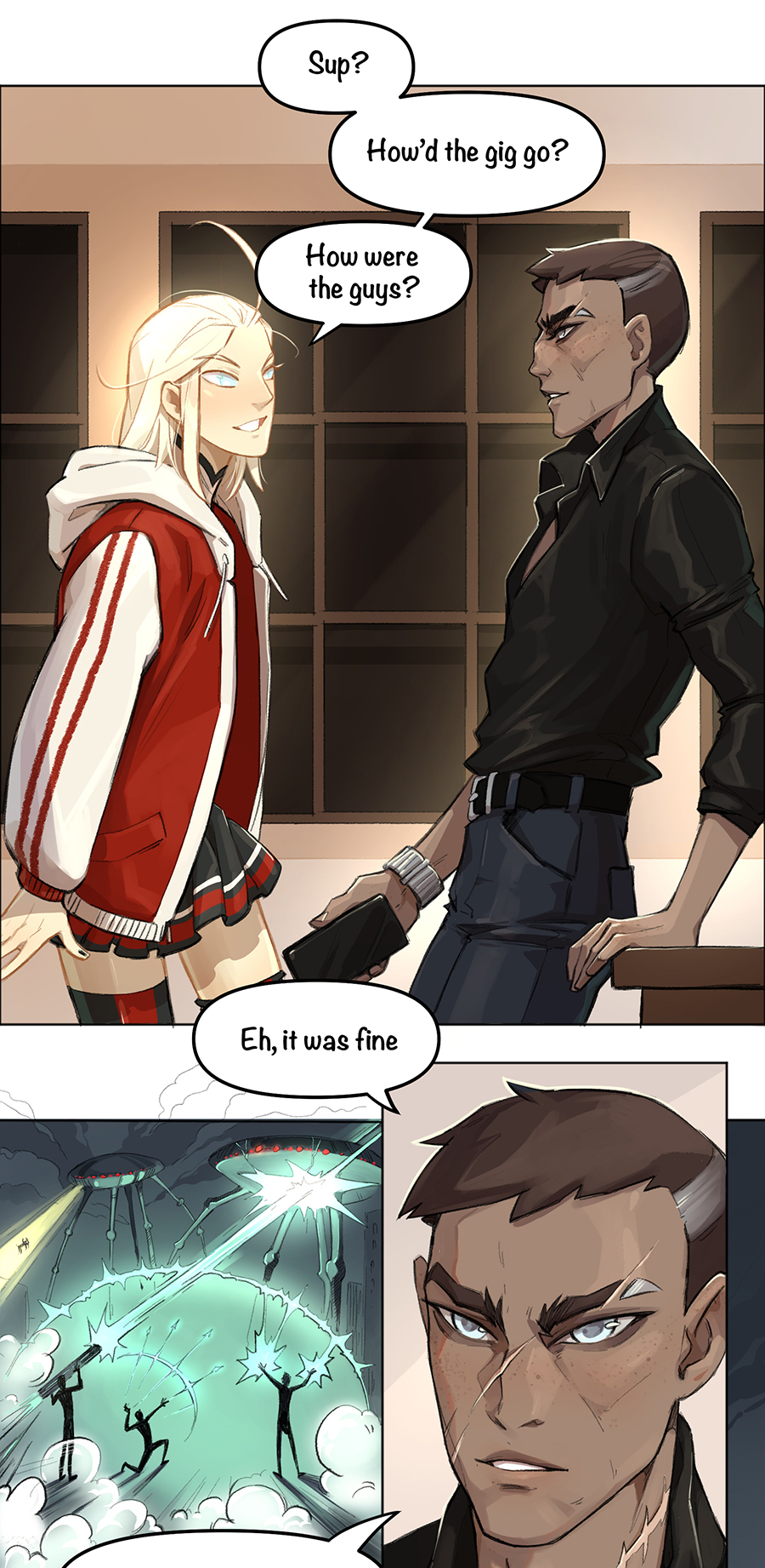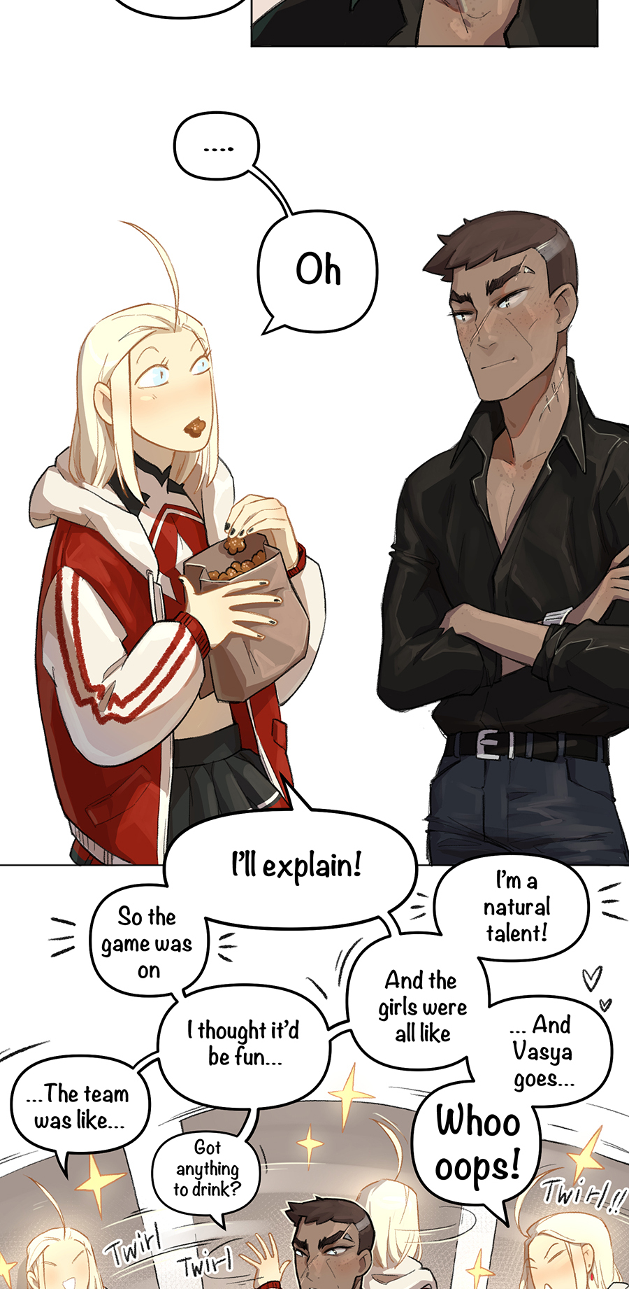 A story about an arranged dynastic engagement of an elf and a vampire, which has no plot and often does not make much sense, so be prepared for this sort of rubbish :) These short and long strips are full of queer and straight love, romance, unicorns and fairytale (lack of) logic in characters’ motivation and the story as a whole.