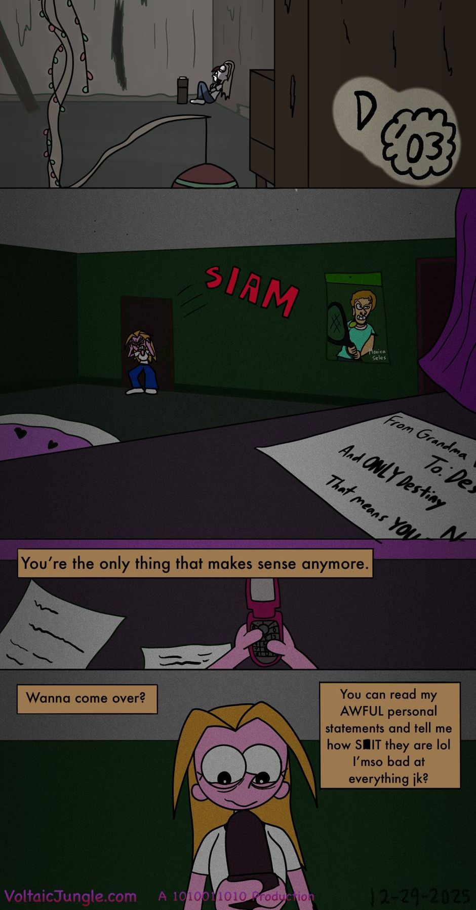 The hit early 2000’s cartoon continues churning out new adventures! Rebooted back to their iconic teenage selves, our six protagonists must cope with their renewed, seemingly endless existences. Watch these poor souls continue to entertain forever and ever and ever and ever and ever... Also available at www.voltaicjungle.com/free_falling