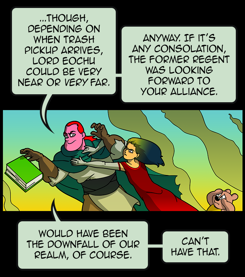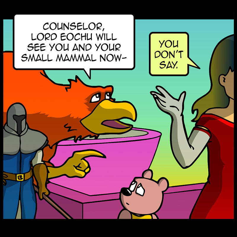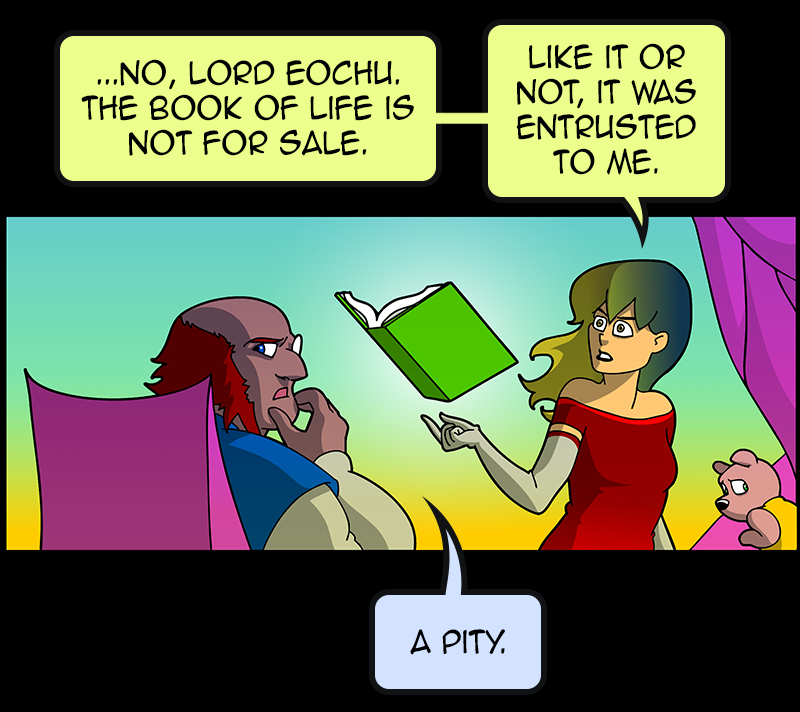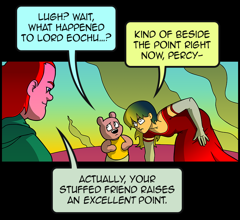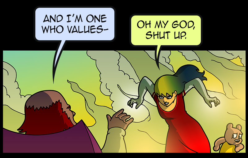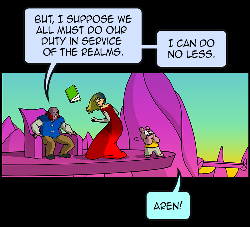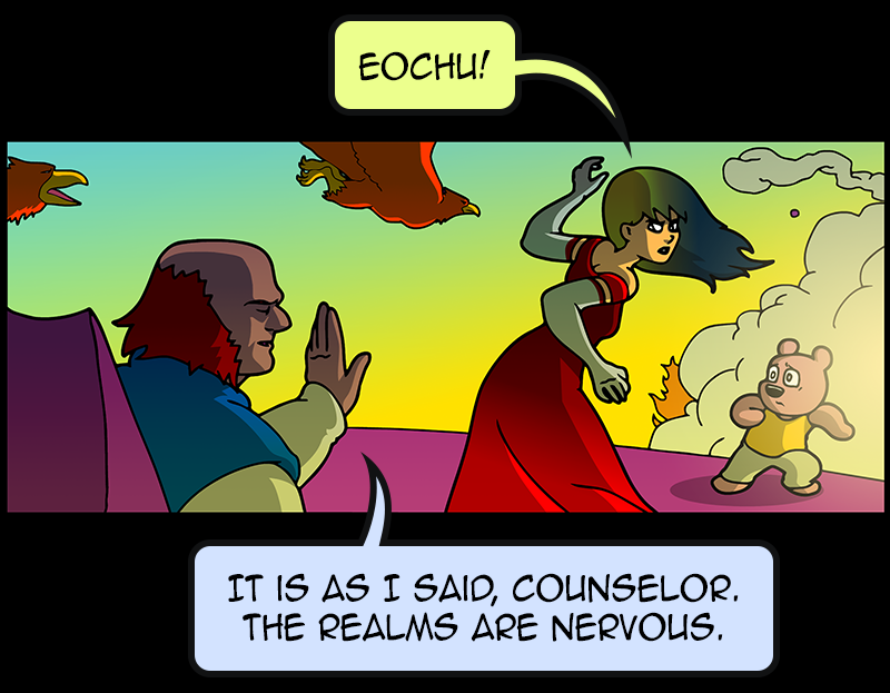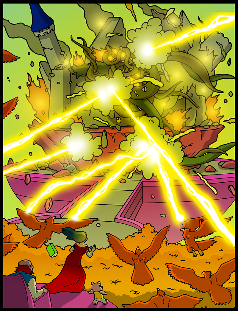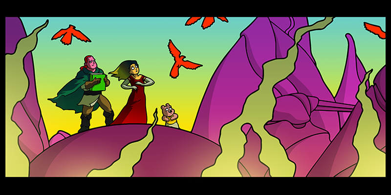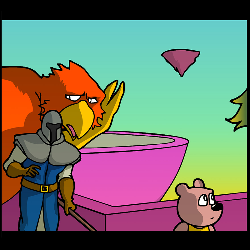 In a vast and war-torn sky realm, a desperate warlord summons a horde of powerful tree creatures, with hopes of bringing the wars to a close ( in her favor). She soon learns that said tree creatures have been accompanied by a small, do-gooder, stuffed bear ... who also happens to be the trees' translator. Hijinks ensue.