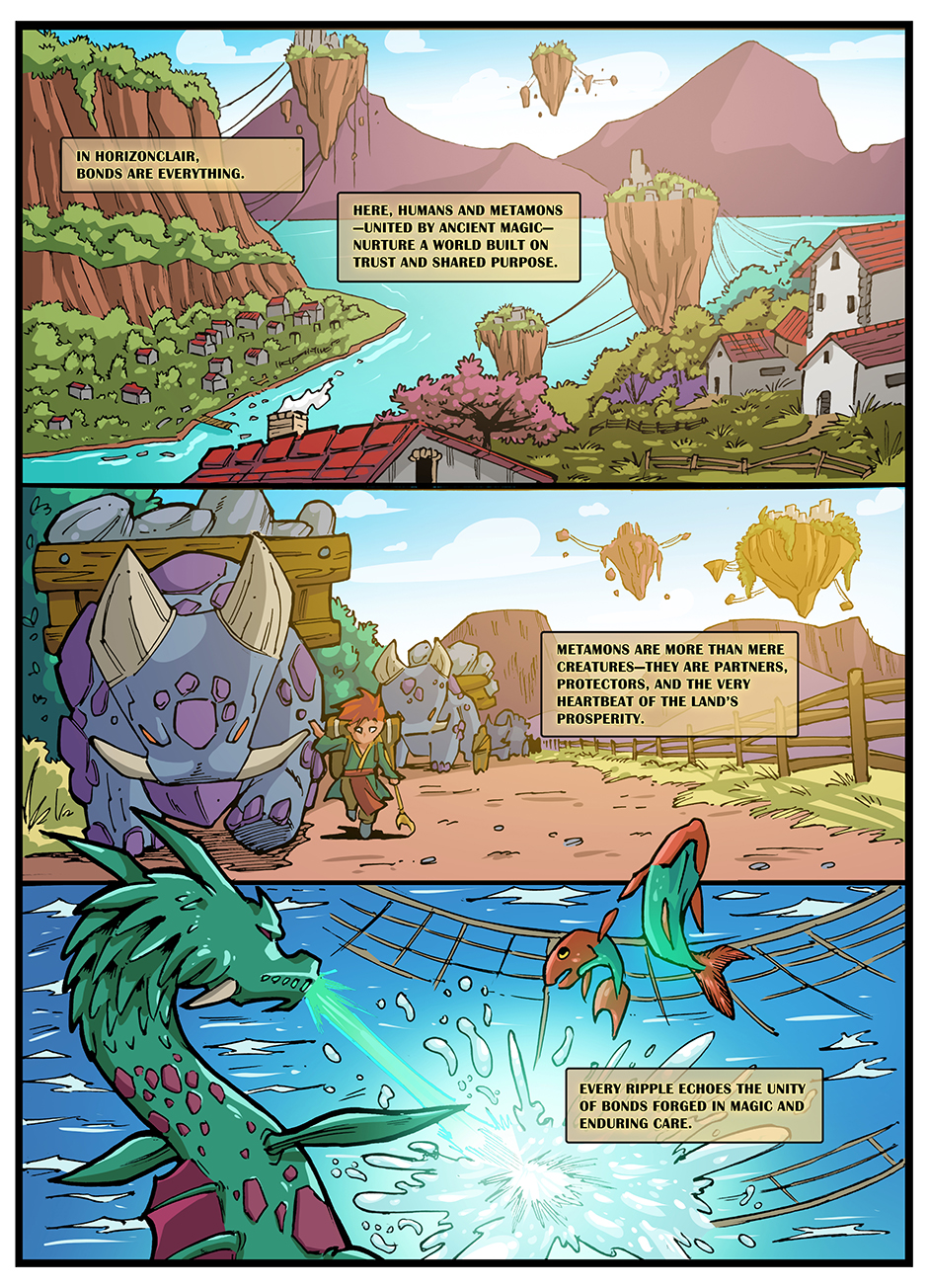 In a world shaped by ancient bonds between humans and metamons, a rising darkness begins to fracture the balance. As forgotten powers awaken and corruption spreads, a lone guardian and his companions stand against a threat no one fully understands. Their choice will echo far beyond the battlefield - and reshape the fate of Horizonclair.