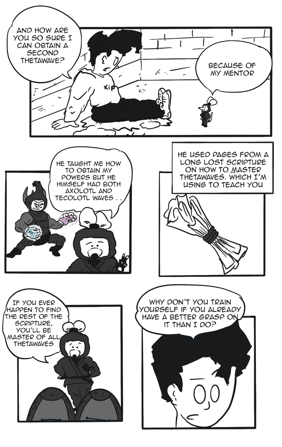 XIpotl and his mysterious ninja mouse are hard at training! Xipotl seems to be having trouble learning a new theta wave that is necessary to stop the rat clan's terrible plans! Can they overcome this hurdle just in time to save the neighborhood ? Find out now!
