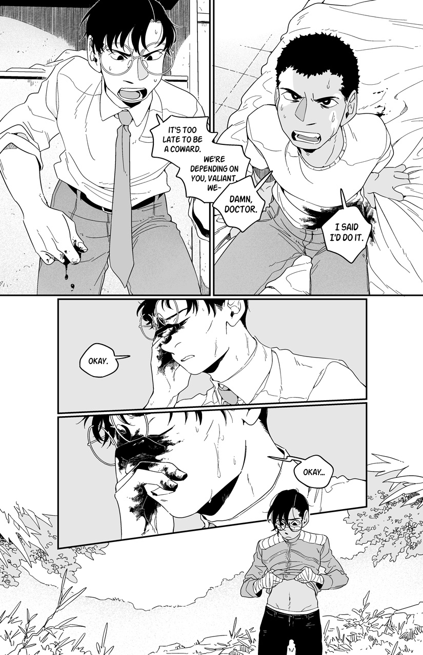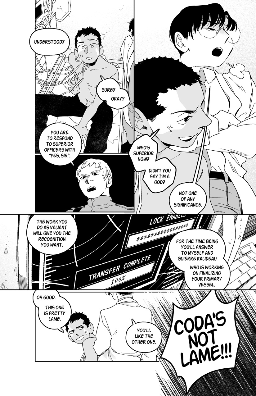 the next chapter is the last one in this series of flashbacks. it will be up.... april...?? i want to give Exo some greys/screentones so i can get it printed and there's a 20p comic i have sketches for but haven't had time to ink so. aaaaaa orz; too many comics.... not enough time...... pain..............