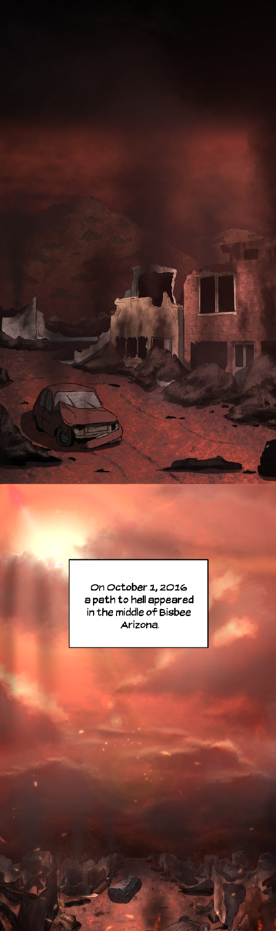 On October 1, 2016, demons began filtering out of a hole in Bisbee, Arizona. Their appearance and the energy they brought with them killed everyone in the small mining town. After months of government experimentation and planning, a small team consisting of two brothers, Dart and Ezra, is sent to investigate the hole.