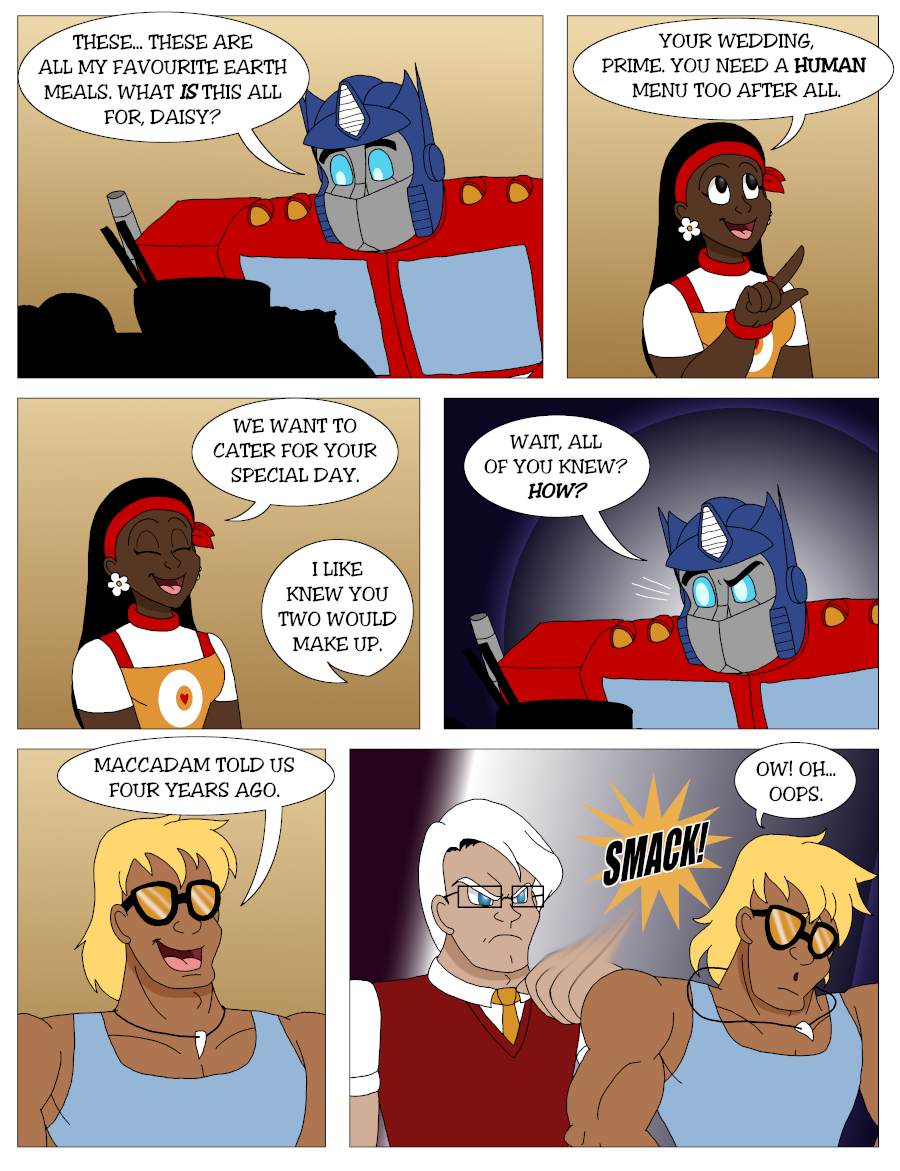 War drove them apart, but peace brought them back together. Four years after Autobots and Decepticons finally made peace, Optimus Prime and Elita-One have decided to remarry and have the wedding they always dreamed of having, but while all drama in their relationship has been addressed, it still seems to attract a lot of drama as well as hilarity.