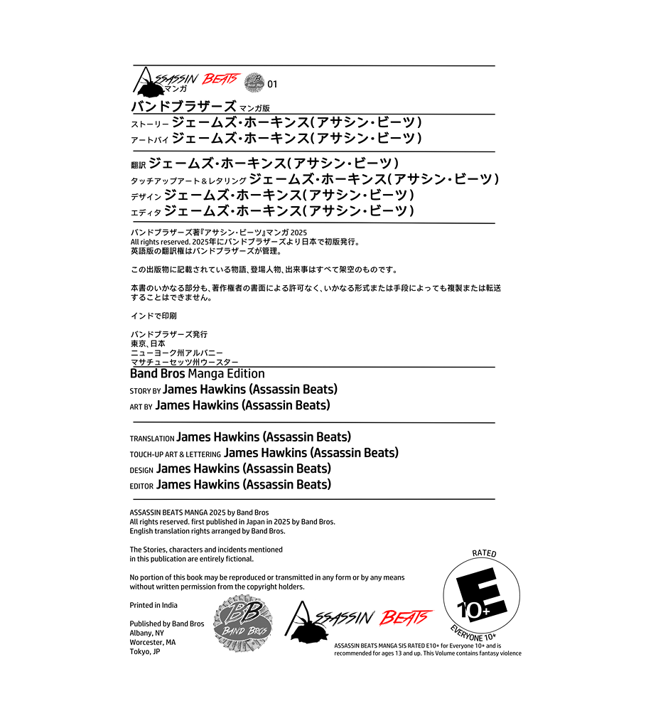 “Assassin Beats” is an original action-fantasy manga series created and published by Band Bros. The story follows Assassin Beats and his group of allies, who once lived peaceful lives until the appearance of a mysterious enemy known as the Fallen Angel. This threat forces them into conflict and unveils secrets buried in the past, tied to Assassin Beats’ own history and collective memories referred to as the “Flashbacks.” Alongside the emergence of a young musical artist called Baby Assassin, the team must confront both internal and external challenges that blur the lines between destiny and free will. Assassin Beats aligns with the E10+ (Everyone 10+) or PG rating criteria. While the previous assessment focused on industry standards for "assassin" titles, your description clarifies that the series avoids the darker tropes typical of that genre. Why it qualifies for E10+ Lack of Actual Assassinations: Since "Assassin Beats" is a name rather than a profession, and no life-or-death killings occur, it avoids the "Mature" or "Teen" labels often given to works with lethal violence. Fantasy Violence: Eliminating a threat with an "aura hand blast" (similar to a Kamehameha) is categorized as fantasy violence. This is common in E10+ rated media, where conflict is stylized and doesn't result in realistic harm or gore. Bloodless Conflict: Without blood, gore, or the psychological weight of taking a life, the series remains accessible to younger audiences who enjoy action-oriented shonen-style stories. Supernatural Resolution: Sealing away or "wiping the existence" of a supernatural evil (the Fallen Angel) using energy attacks is a standard "good vs. evil" trope for younger demographics, focusing on heroism rather than gritty realism.