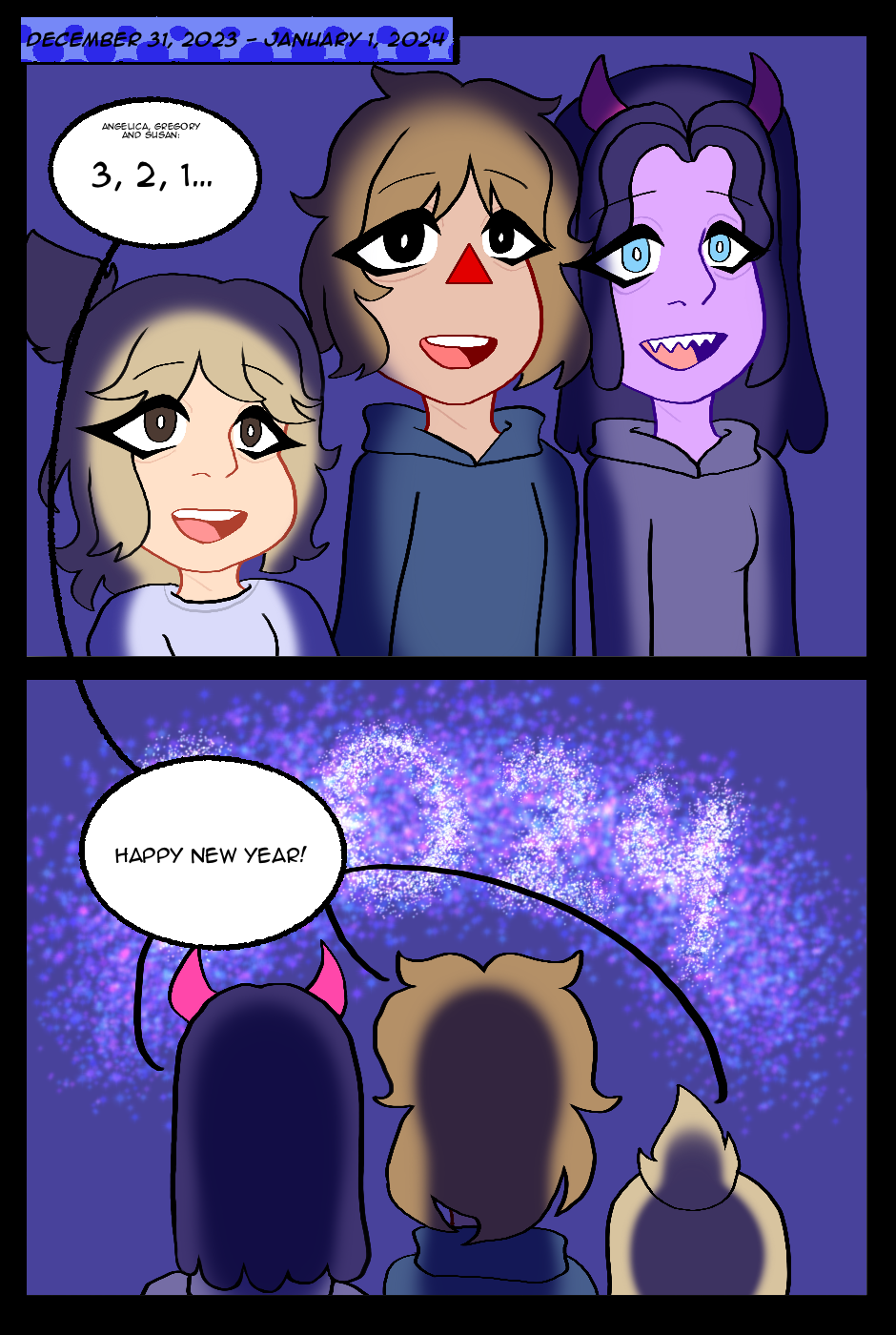 On New Year’s Eve, Gregory, Angelica and their friends went to celebrate the new year on the cold beach. Gregory and Angelica are opposing to make their instruments high and low.