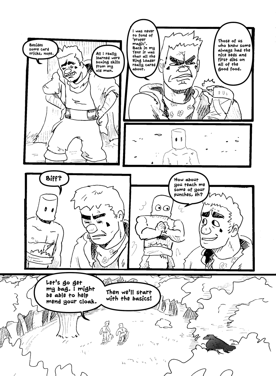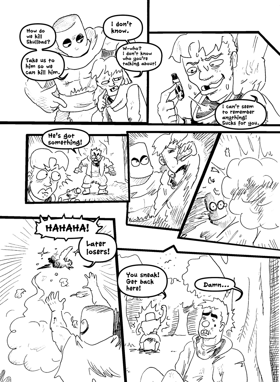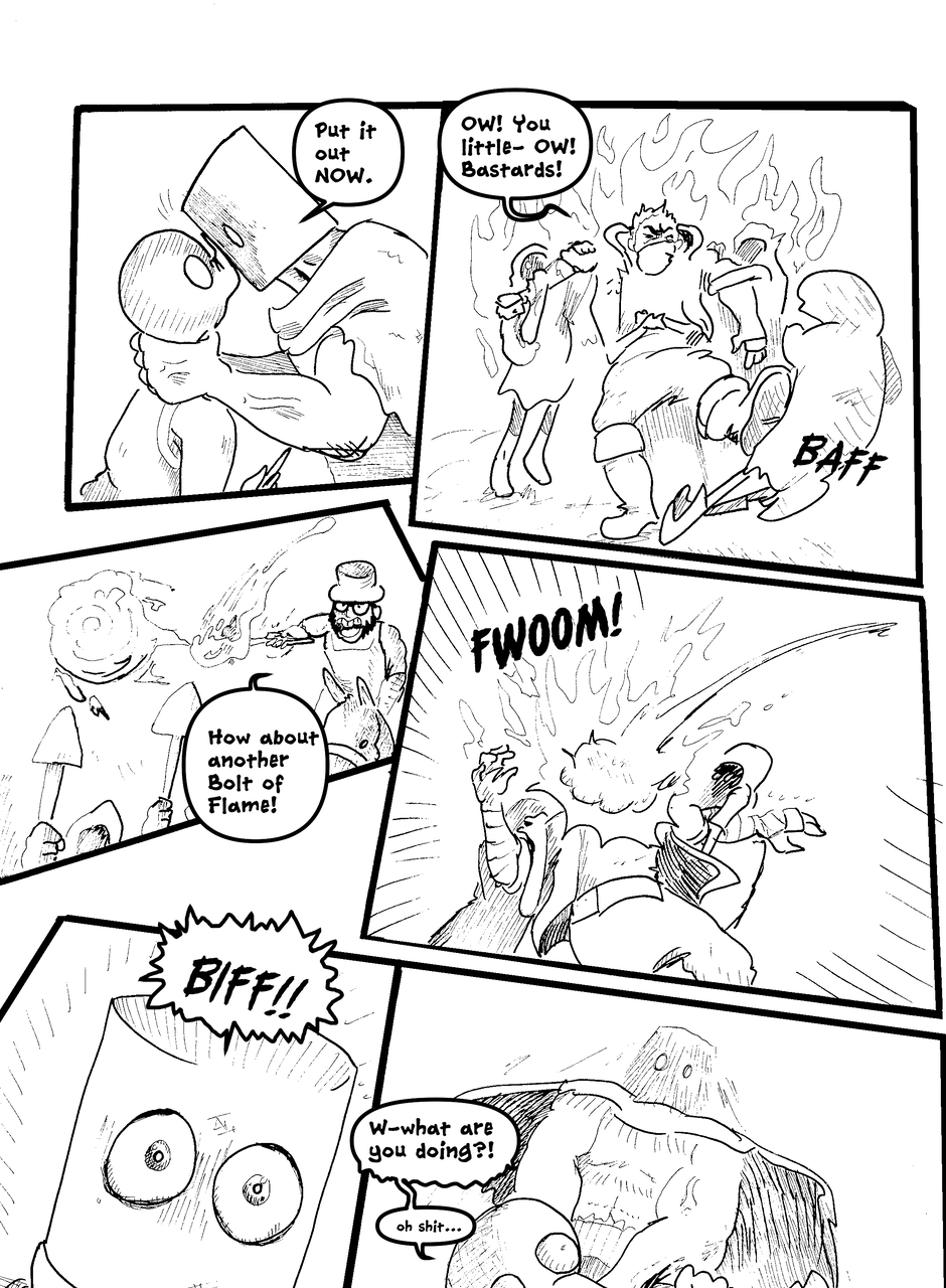 What is under the bucket? No one is sure... This Barbarian has an impossible goal. With the aid of Biff the clown brawler and Brissa the business witch, they'll help one another achieve their goals. The road won't be easy in a world full of barbarians, monsters and Reptothrax's Mighty Draconian Legion.