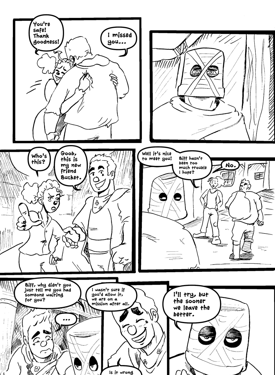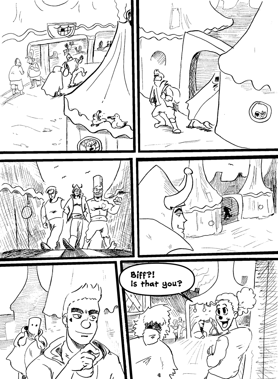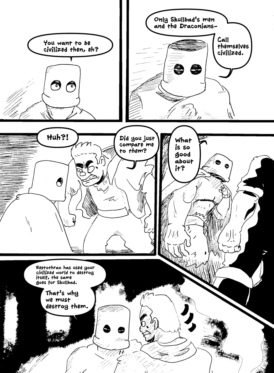 What is under the bucket? No one is sure... This Barbarian has an impossible goal. With the aid of Biff the clown brawler and Brissa the business witch, they'll help one another achieve their goals. The road won't be easy in a world full of barbarians, monsters and Reptothrax's Mighty Draconian Legion.