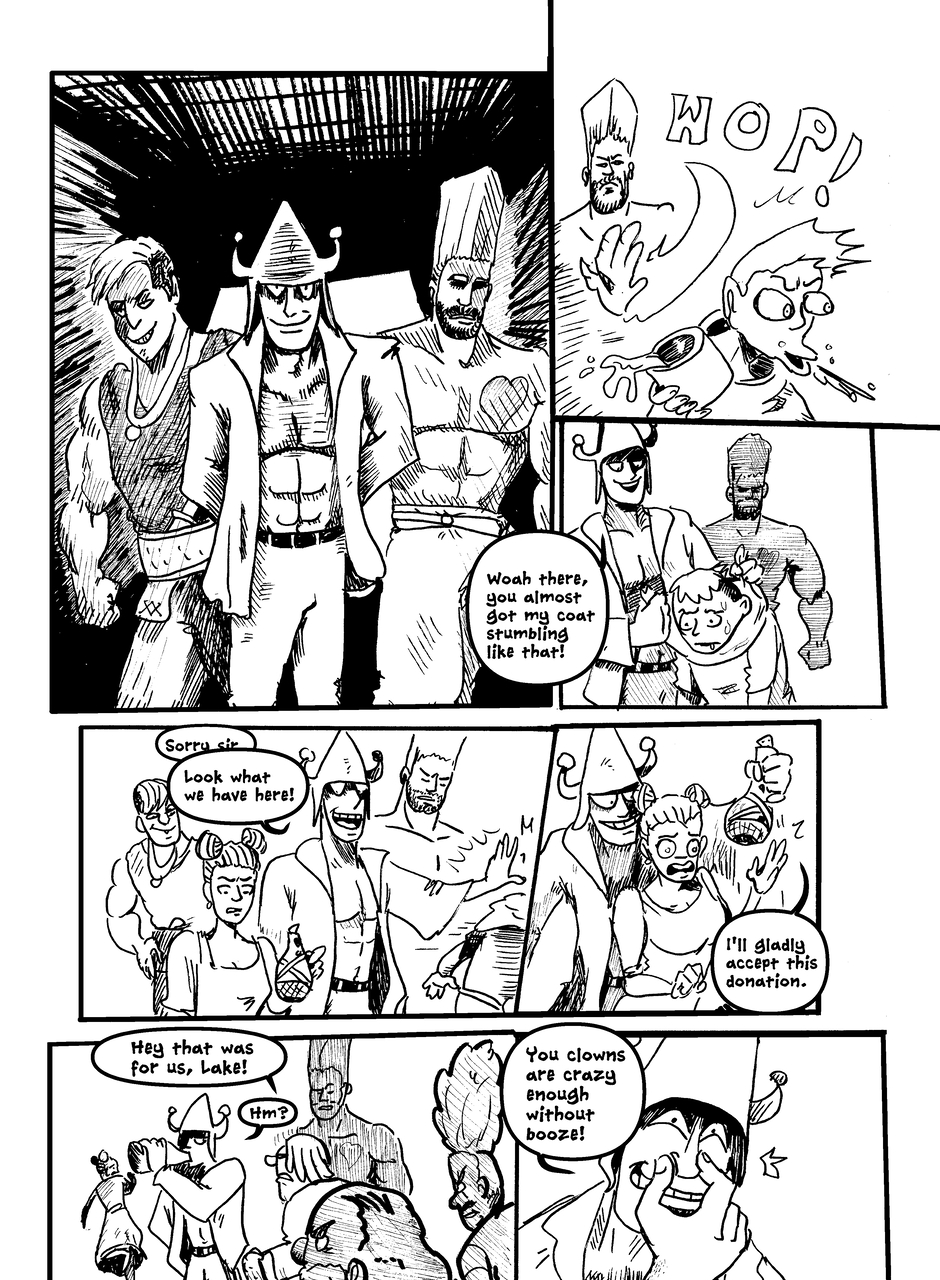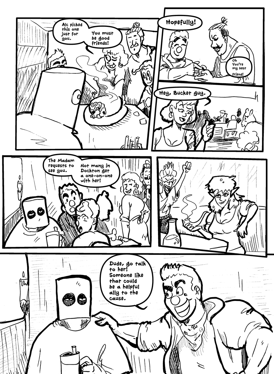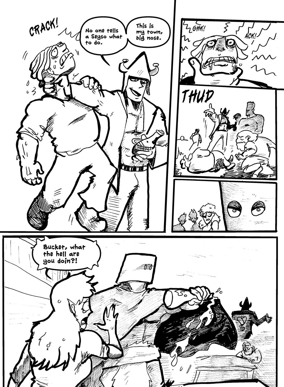 What is under the bucket? No one is sure... This Barbarian has an impossible goal. With the aid of Biff the clown brawler and Brissa the business witch, they'll help one another achieve their goals. The road won't be easy in a world full of barbarians, monsters and Reptothrax's Mighty Draconian Legion.