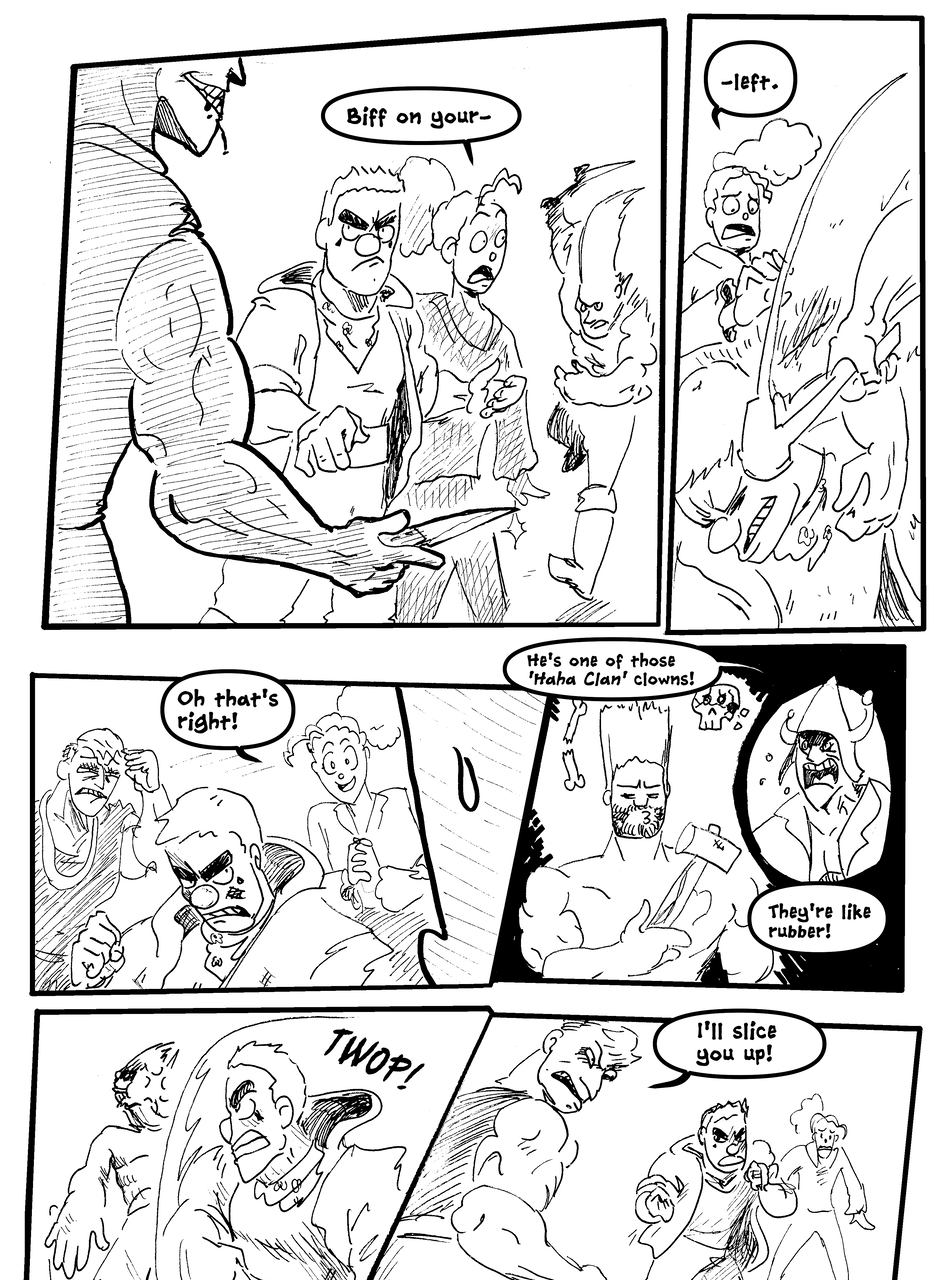What is under the bucket? No one is sure... This Barbarian has an impossible goal. With the aid of Biff the clown brawler and Brissa the business witch, they'll help one another achieve their goals. The road won't be easy in a world full of barbarians, monsters and Reptothrax's Mighty Draconian Legion.