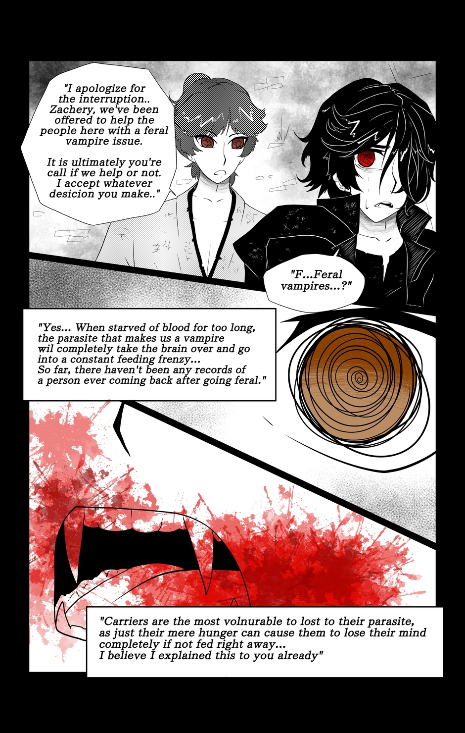 The world left to rot after the great war years ago, leaving behind parasite infected humans known as Vampires. In this postapocalyptic world, we follow the story of a young man named Zachery Kaiser, as he learns about himself and the world around him, facing dark truths and the harsh reality of this rotten world...