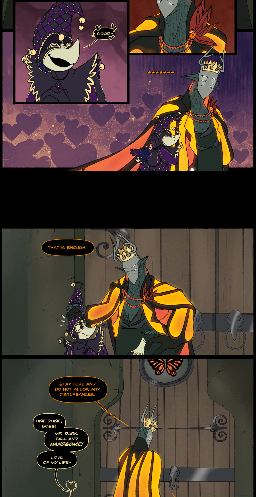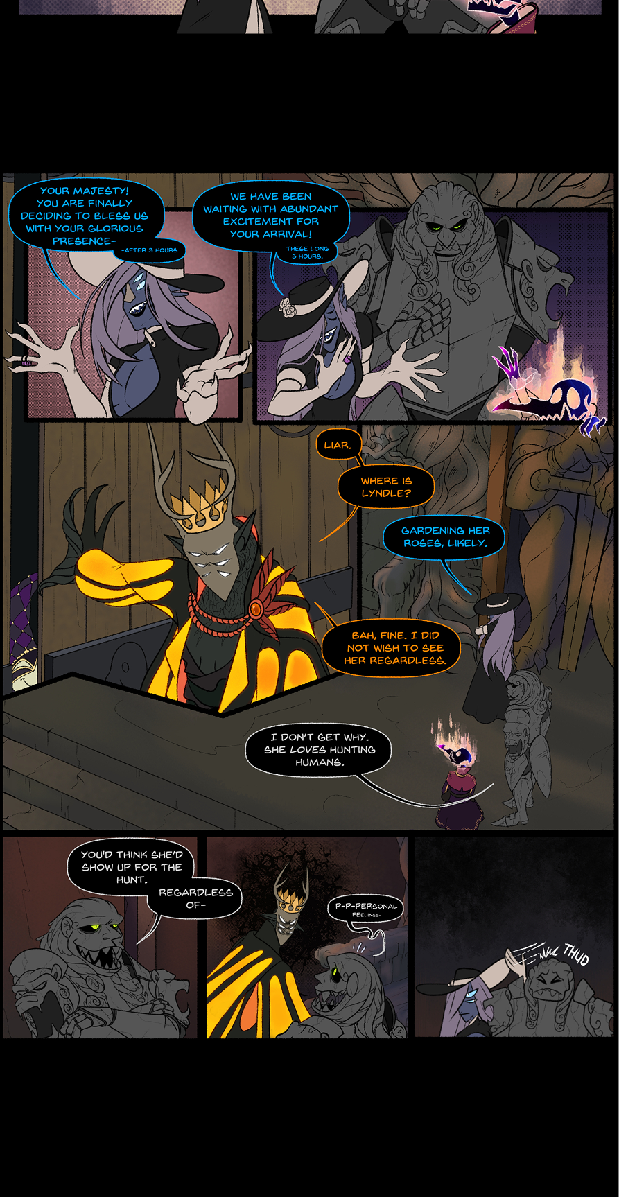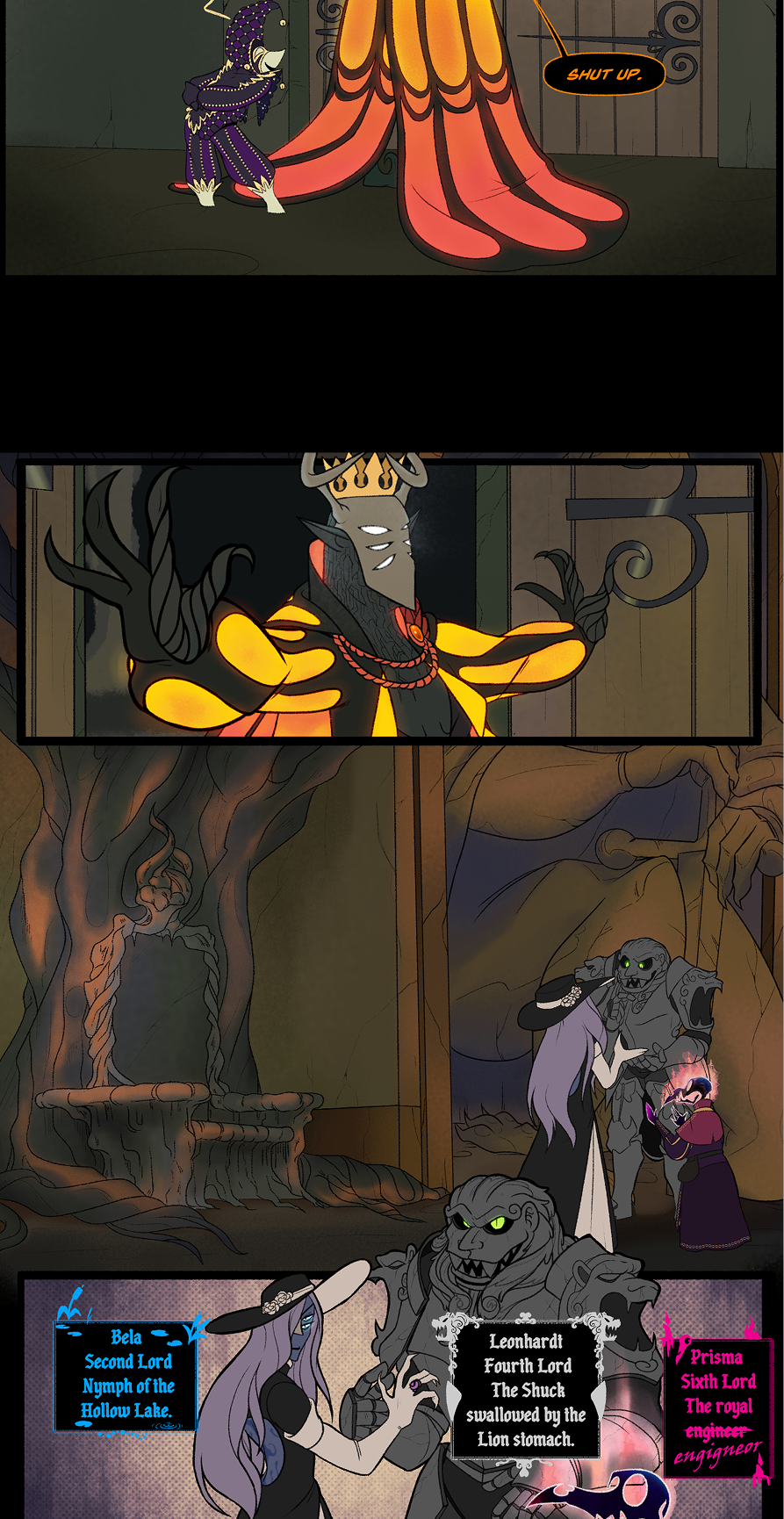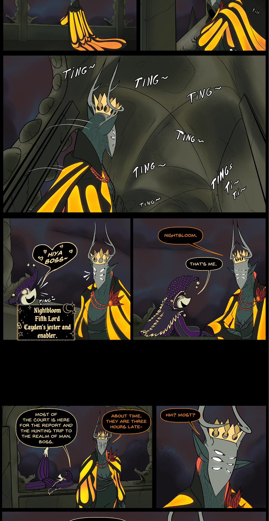 This scene was also a pain because of the backgrounds.. Later in Chapter 4 I ended up designing Cayden's throne room properly, so for consistency sake I had to redraw the backgrounds... Horrible. Later on in this chapter you can kiiinda see where I gave up on that.