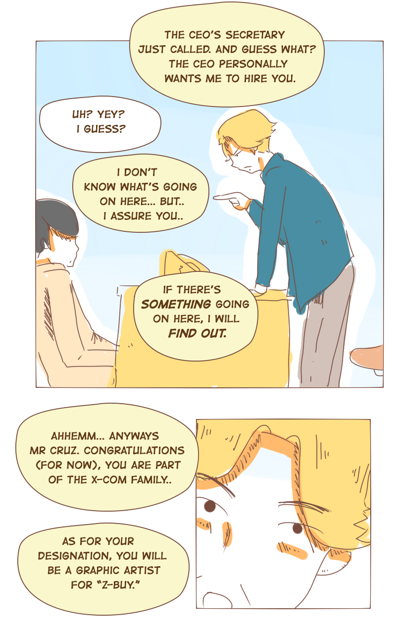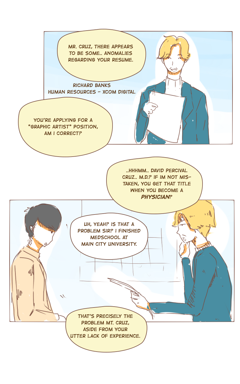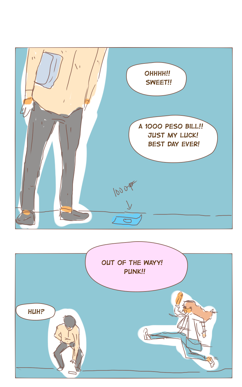Finally had a chance to draw again! :D in this chapter dave did his job interview! and bumped to an unknown girl. lol Btw, 1000 pesos is about 20USD