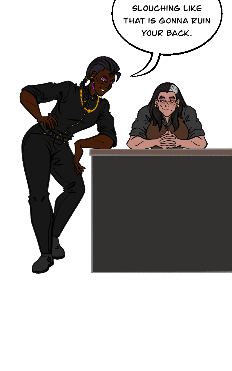 Thanks to my friend @songvari on Cara for lending me 4 of their characters to help populate the party a bit! In order from left to right and top to bottom, their names are Gallow Cross, Illia Chan, Amon Seht, and Vittoria Rosanna Aravecio.