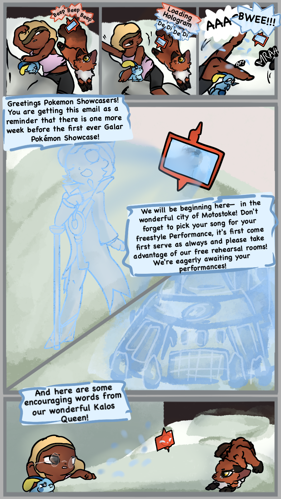 Jayla has been fascinated with Pokémon Showcases for years and when she gets the opportunity to join in on the new Showcases coming to Galar she leaps for it! Alongside her friend Hop in a twist of a Pokémon Nuzlocke narrative Jayla tries to find success in Showcasing and the Gym Challenge… and the heartache that comes with both.