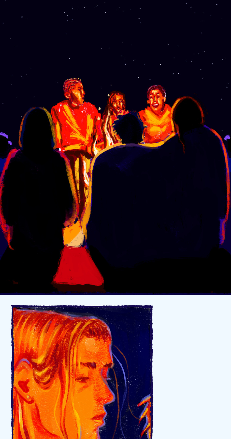 The coloring on the campfire scene is so gorgeous 😭💕💕