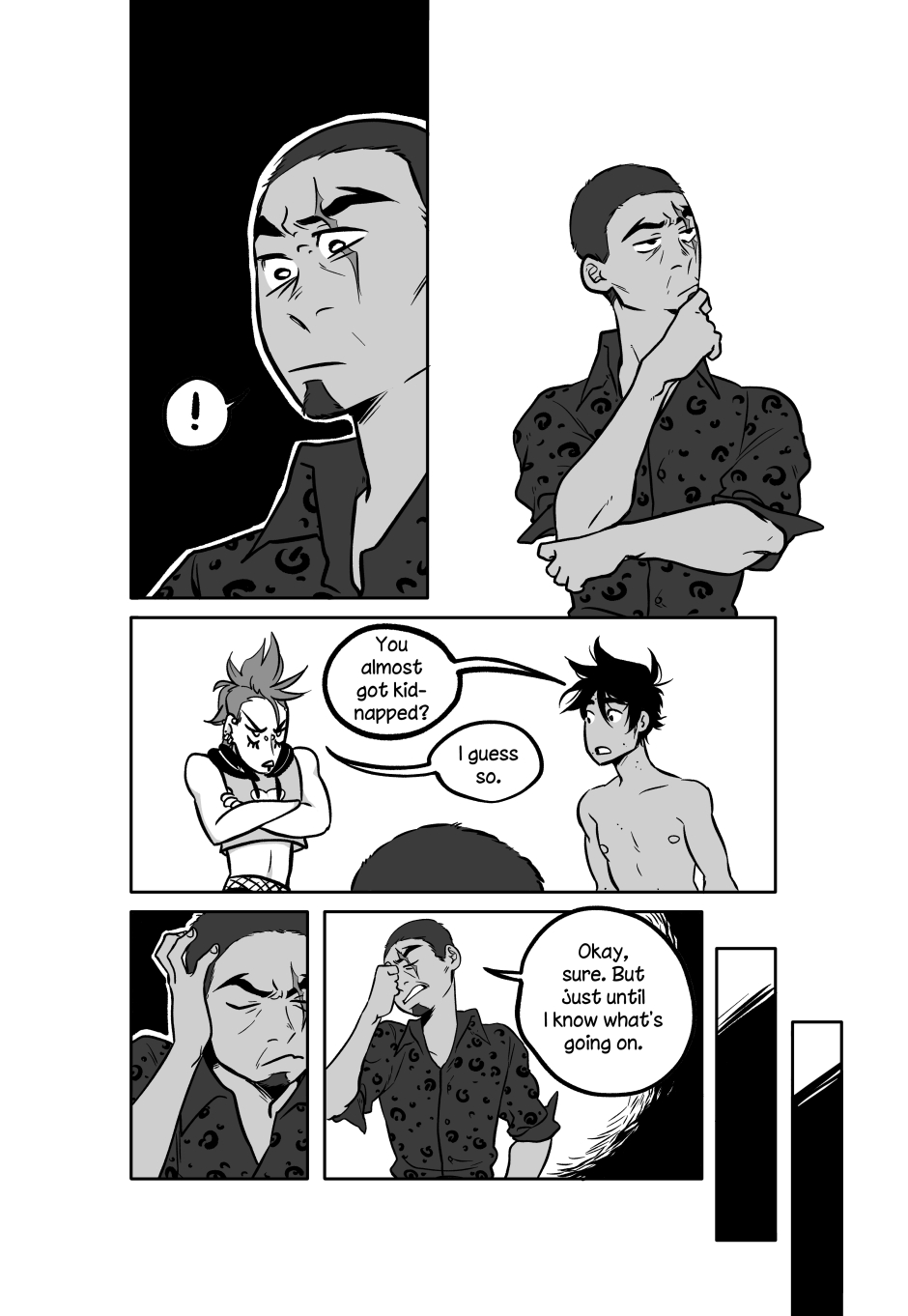 The adventuring party is complete! Maybe! Thank goodness they have somewhere safe to go, I feel like neither of them has quite processed what happened to them today
