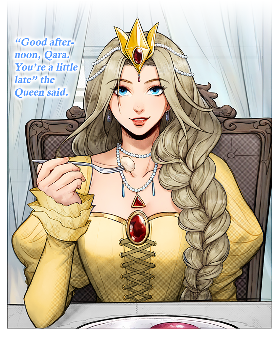 At the same time, the Prince is supposed to be impartial to the competitors vying to become his Queen. However, upon learning that Qara has been chosen, he reveals that she is the one he has always wanted to marry. Unfortunately, precedence dictates the Prince does not get to decide his future wife, it has and will always be determined by the prestigious Queen Games tournament. Shocked by this unexpected but deeply desired revelation, Qara reciprocates his affections. Now, the two secretly conspire to secure her victory, not because they want to be King and Queen, but because it’s the only way for them to be together.