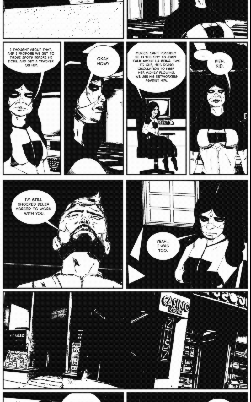Belza teams up with Doble to track down Murico, a loyal servant of the fearsome La Reina. As they follow a trail through St. Louis’ criminal underworld, Doble’s meticulous strategies clash with Belza’s brutal methods. The hunt leads them to an abandoned pier, where Murico is supposedly waiting to seal Belza and Doble’s fate.