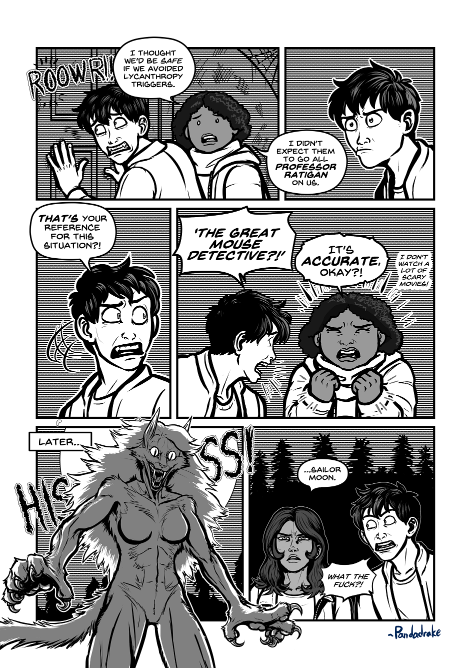 Sharise, a literal werewolf, watching an enemy change into a more animalistic second form: “Getting a lot of ‘Professor Ratigan’ vibes from this.”