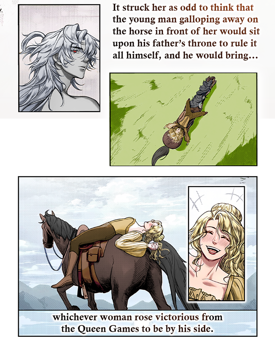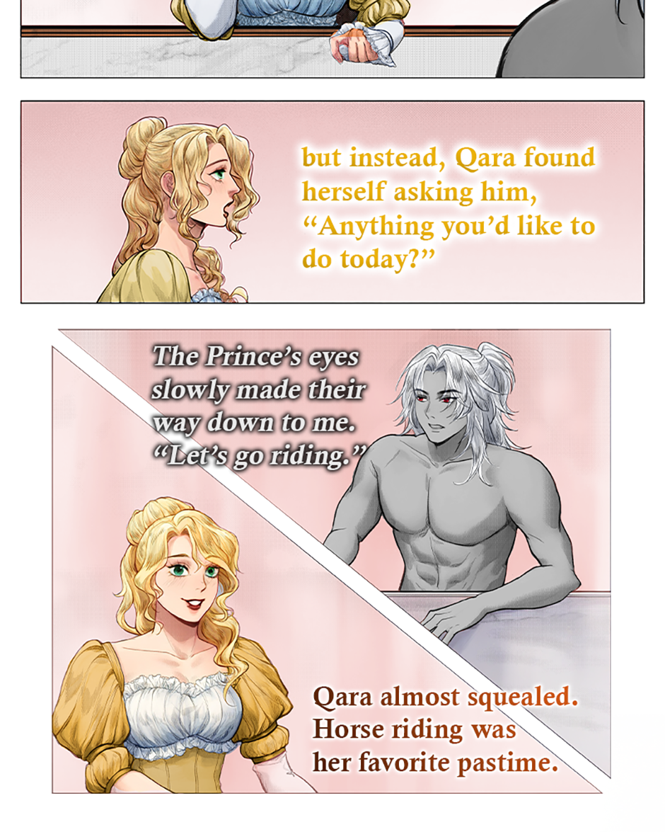 At the same time, the Prince is supposed to be impartial to the competitors vying to become his Queen. However, upon learning that Qara has been chosen, he reveals that she is the one he has always wanted to marry. Unfortunately, precedence dictates the Prince does not get to decide his future wife, it has and will always be determined by the prestigious Queen Games tournament. Shocked by this unexpected but deeply desired revelation, Qara reciprocates his affections. Now, the two secretly conspire to secure her victory, not because they want to be King and Queen, but because it’s the only way for them to be together.