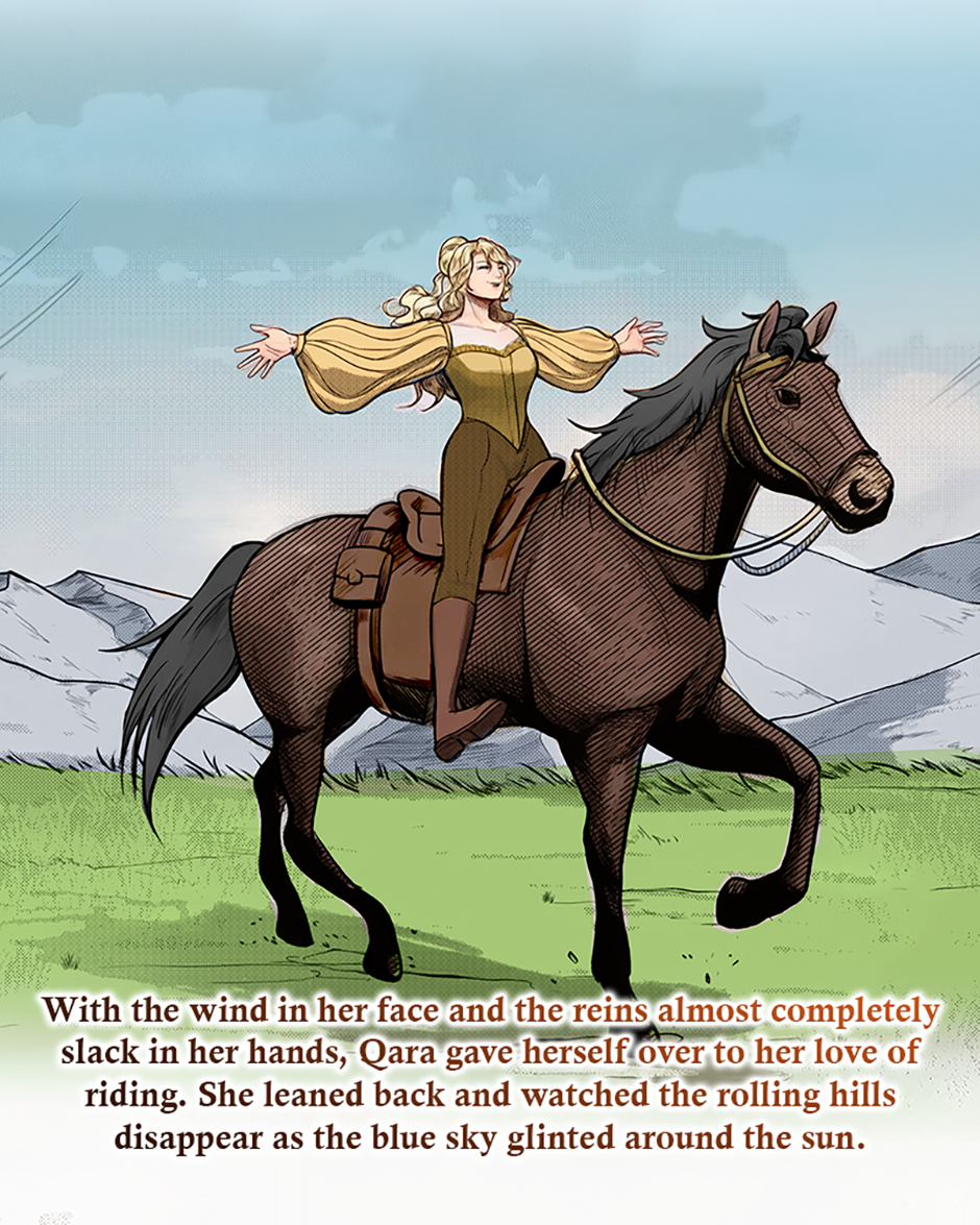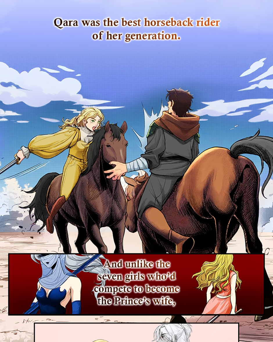 Twenty-three-year-old Qara, a fierce horseback warrior, hopes to compete in the Queen Games—a brutal tournament that embodies the cunning and ruthlessness needed in order to rule as Queen. Qara has been mentored by the reigning Queen and raised alongside her son, the Prince. Qara shares a strictly formal relationship with the Prince while secretly hoping to become his future wife. However, after years of rigorous training, Qara has officially been chosen to represent her culture in the next Queen Games.