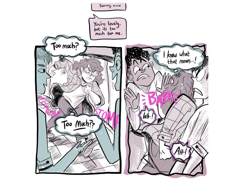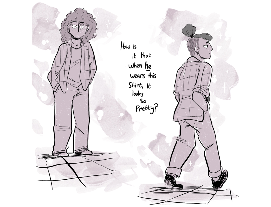 This comic is an unapologetic deep dive into my complex own feelings about gender identity…. but in the style of a sassy 90s highschool movie with a ridiculous plot.
