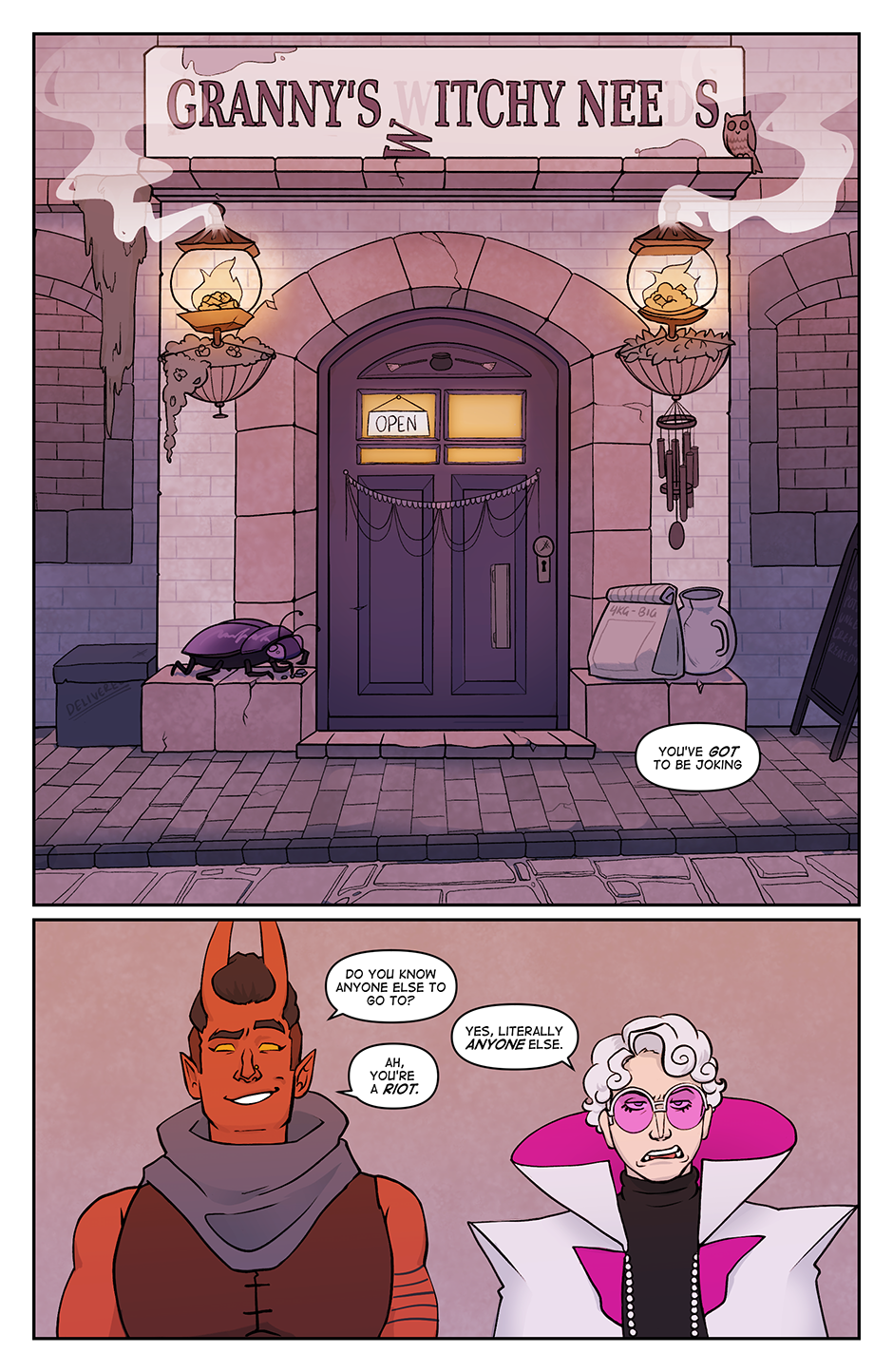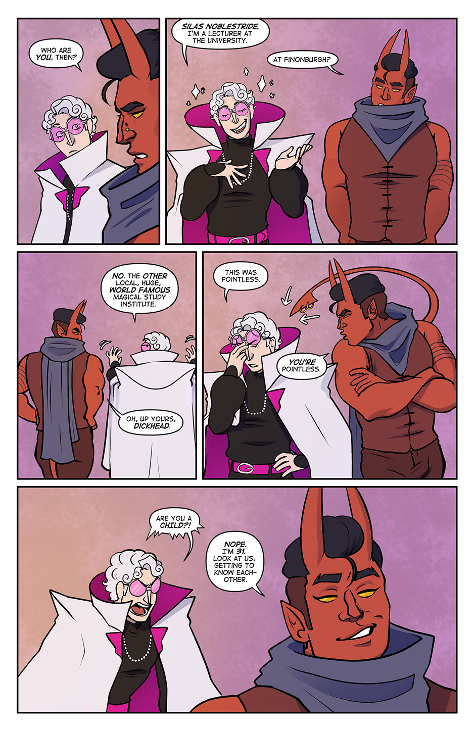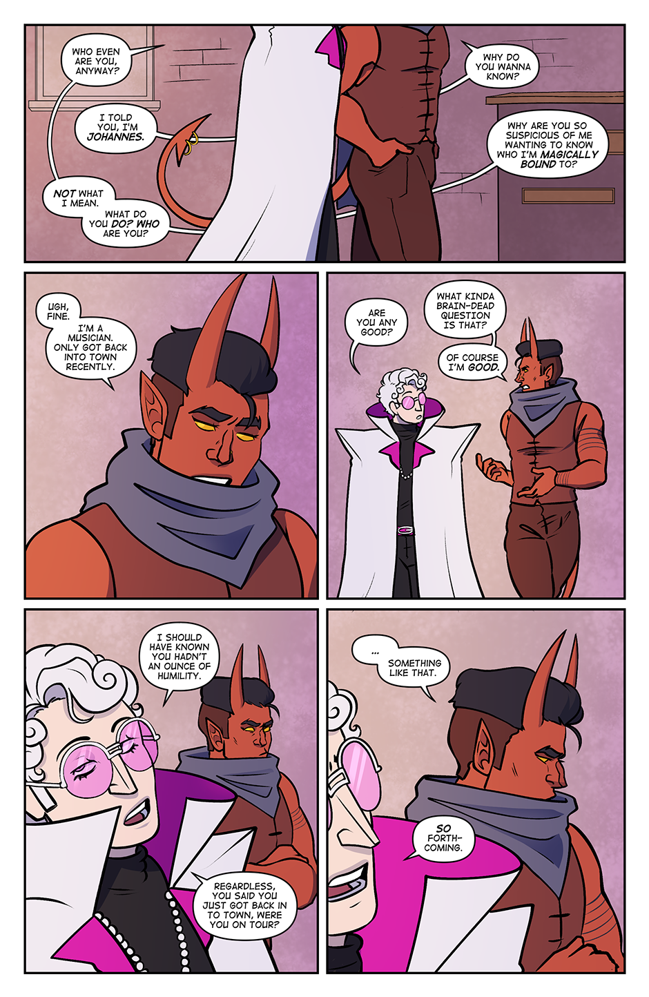 Spite Bound is a romance, modern(ish) fantasy comic about Johannes and Silas, two men who should know better. Full of slow-burn, enemies to lovers tropes, witty comedy, and frustratingly dense men, Spite Bound is inspired by the worlds of various TTRPG's and fantasy comics.