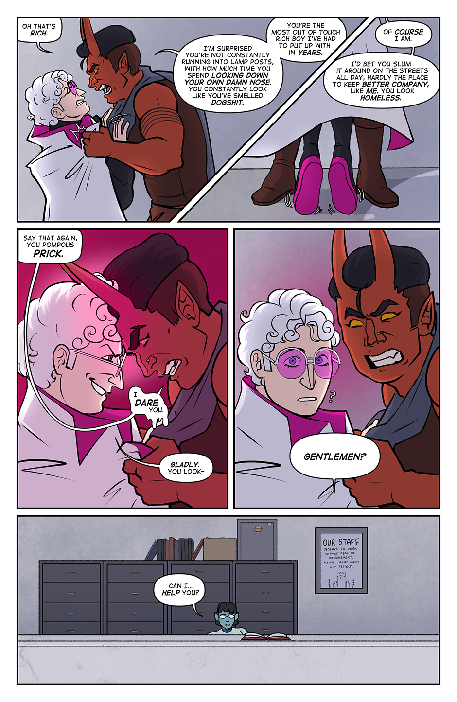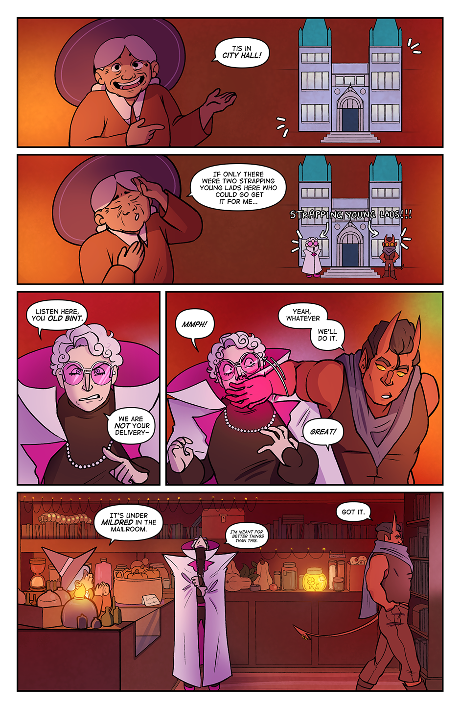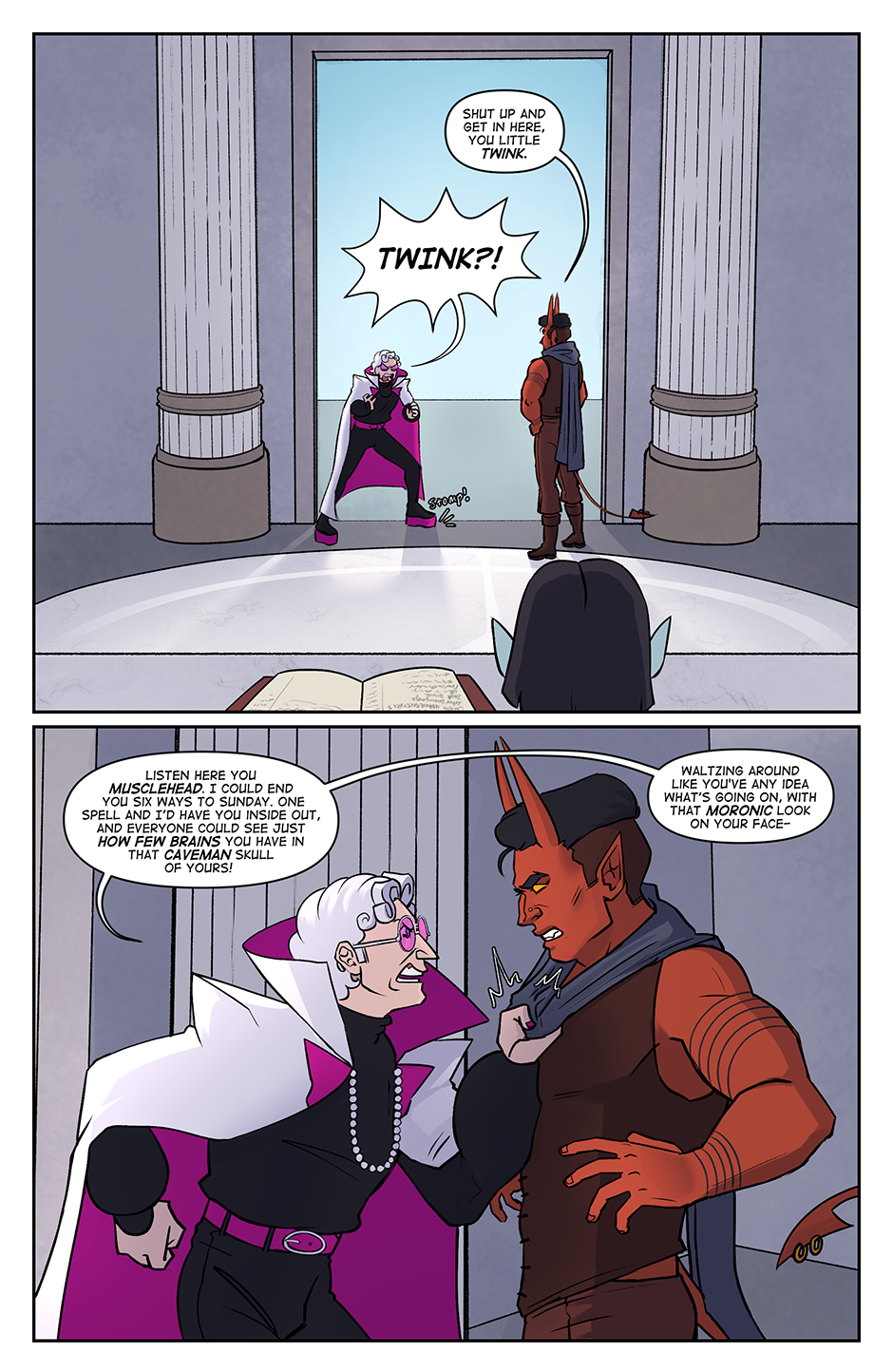 Spite Bound is a romance, modern(ish) fantasy comic about Johannes and Silas, two men who should know better. Full of slow-burn, enemies to lovers tropes, witty comedy, and frustratingly dense men, Spite Bound is inspired by the worlds of various TTRPG's and fantasy comics.