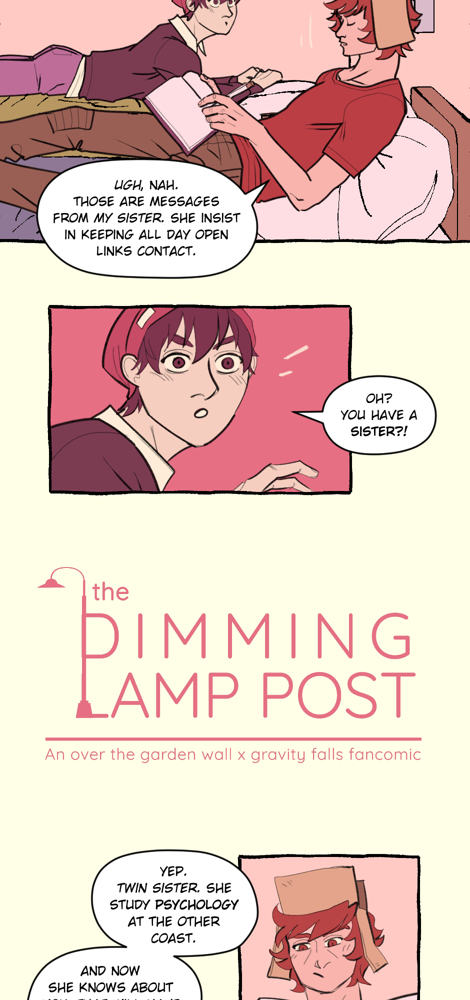 Dipper went away from his family and problems to try to find his way and solve mysterys. Little did he know that in his new university, Wirt would be also searching his future. Now, forced to live in the dorms together, they will try reahc their goals, get along, and resolve the biggest mystery of all. Who are they.