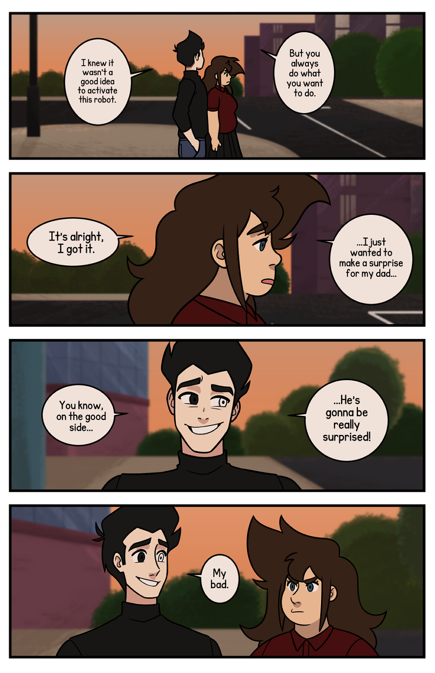 Together with her friend Drayden, she finds one of her father's projects and builds a robot that was not supposed to exist.