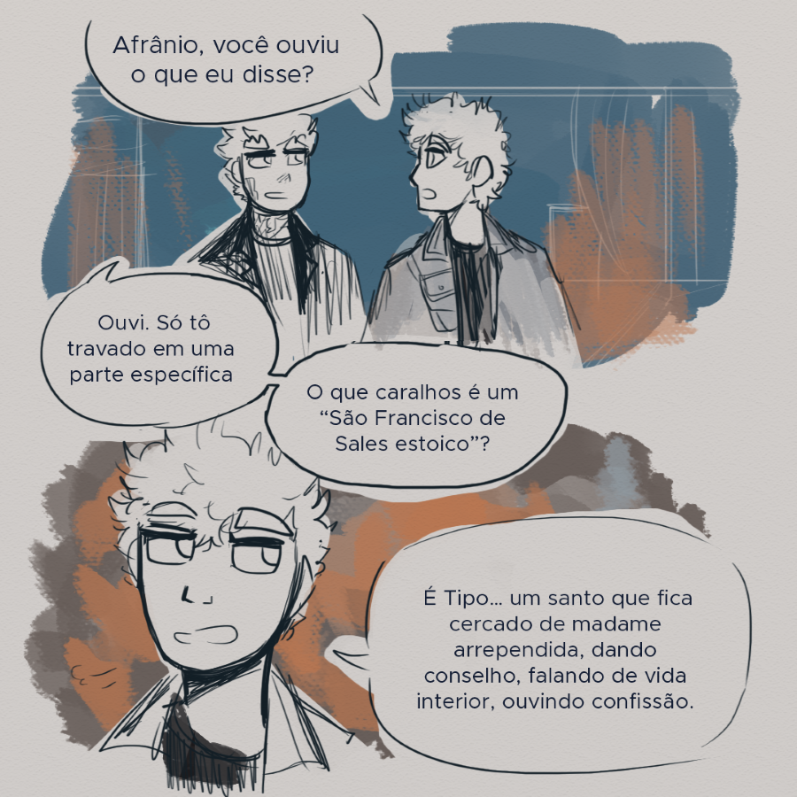 Lucius Annaeus Sêneca, um estoico diplomático e paciente, começa o ano letivo sendo abençoado com a presença de um caos com ostracismo: Albert Camus, o persona non grata da escola. Sêneca, você só queria paz, não é?