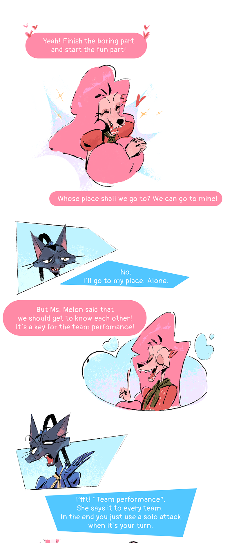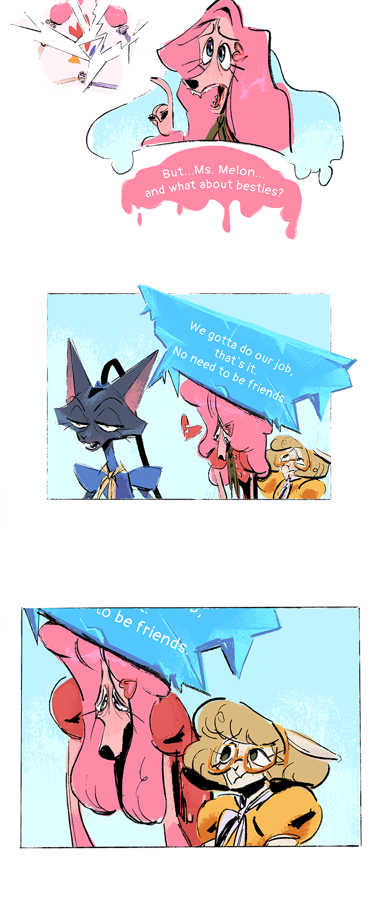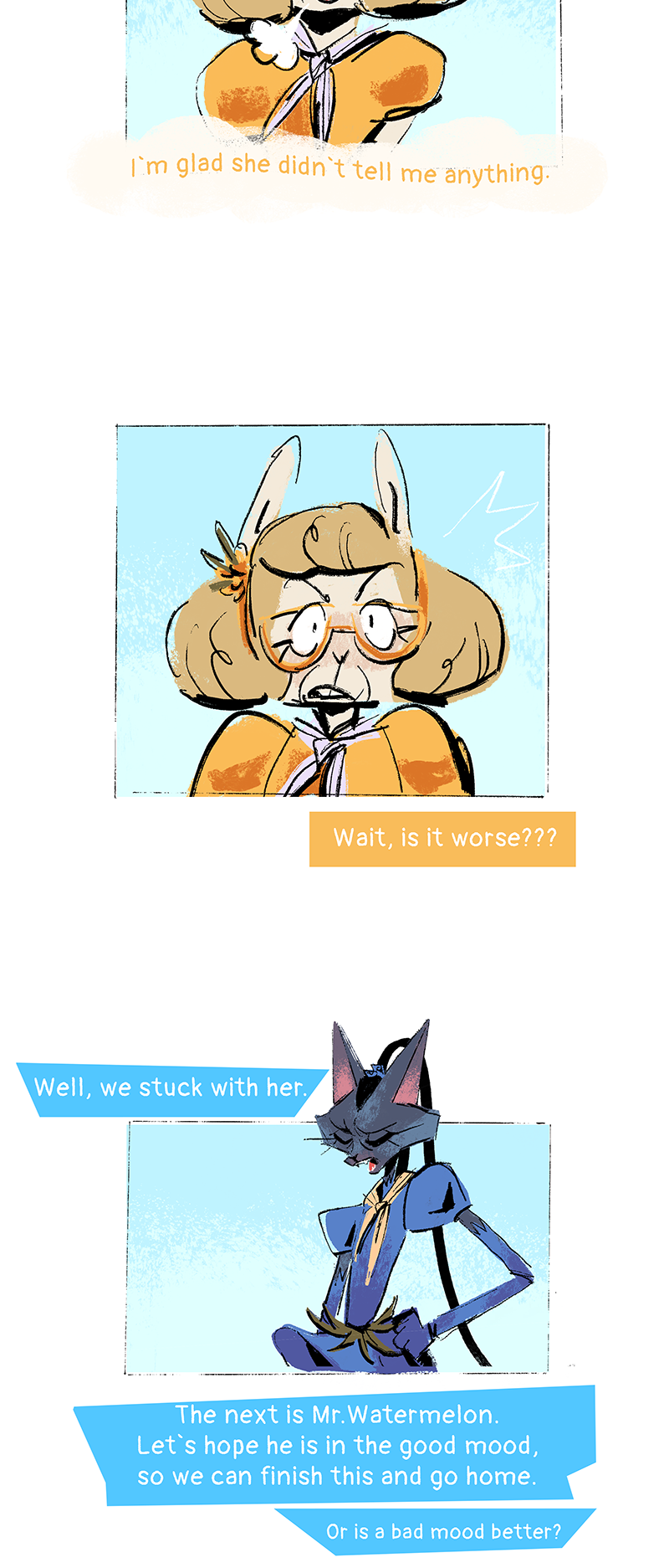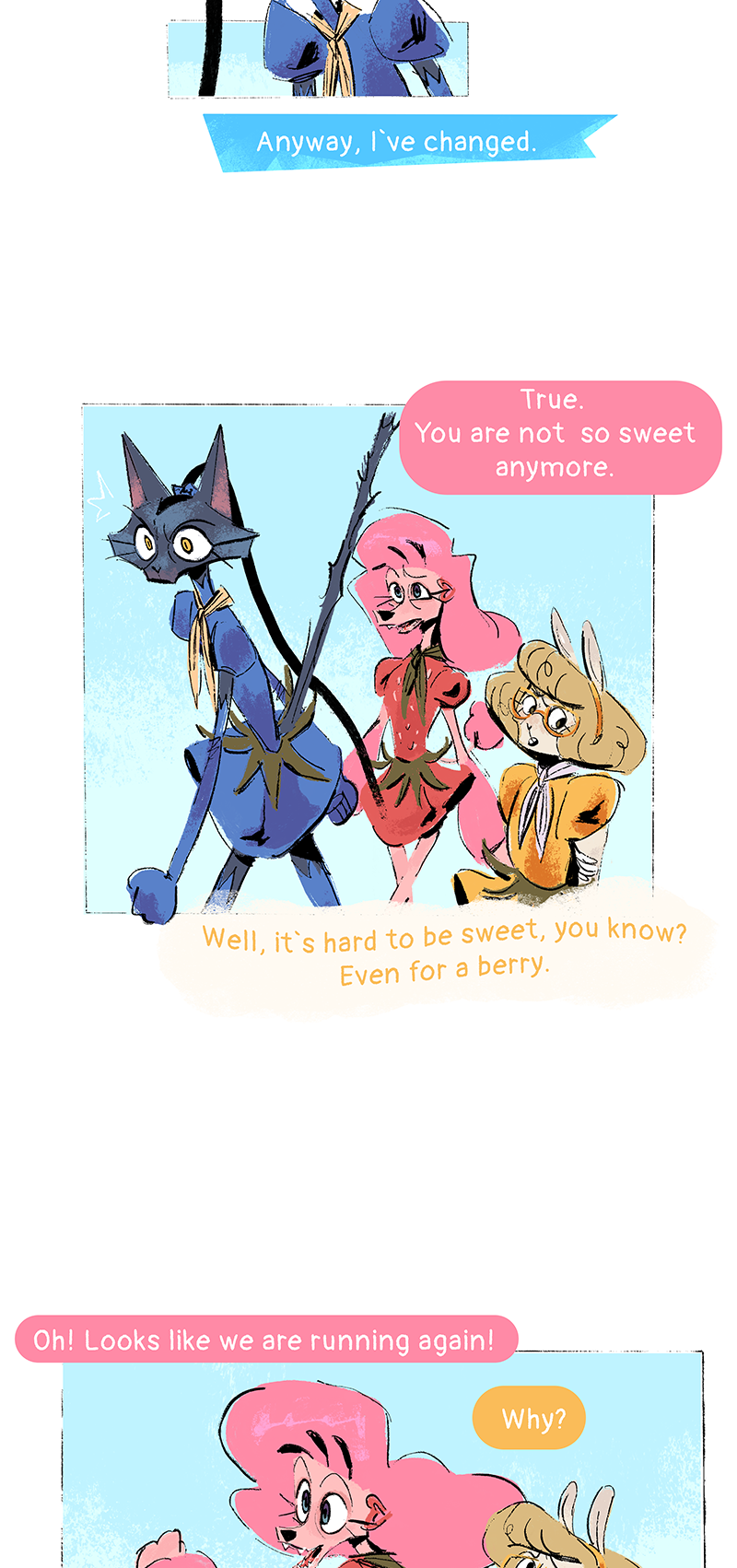 I thought I was commenting here but ended up commenting on the first chapter, really love to see those 3 together, it's still early but I think they form an interesting trio, can't wait to read what blueberry deal is, her character switch (if we can trust what strawberry says) really makes you wonder what might have happened 2 years ago