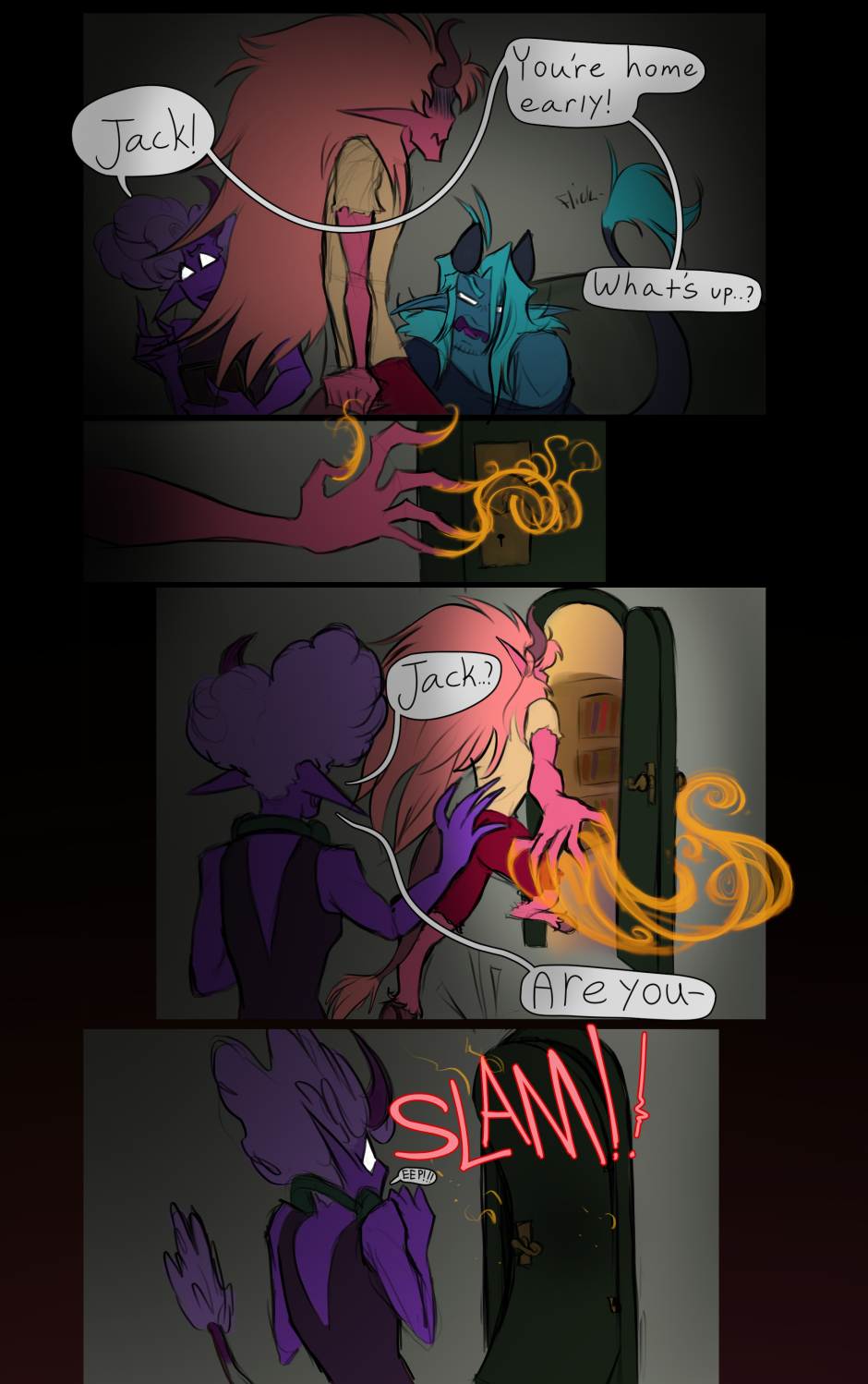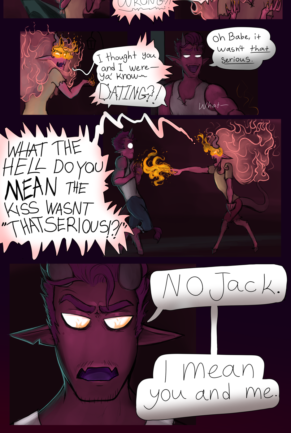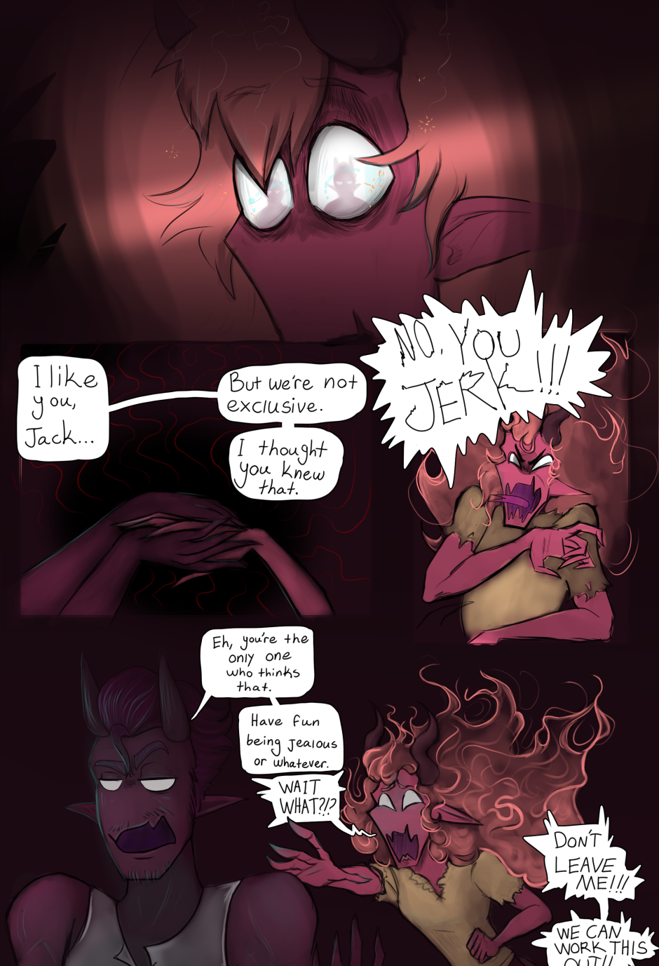 Meeting Jack for the first time, you can get a glimpse into the instability of his current life in Hell. Whether he inflicts that on himself by surrounding himself by terrible people, or if he just so happens to find himself attracting said bad people is yet to be understood. All we really know is.. This is the first 5 pages of chapter 0 - AKA the prologue, AKA, "The Breakup."