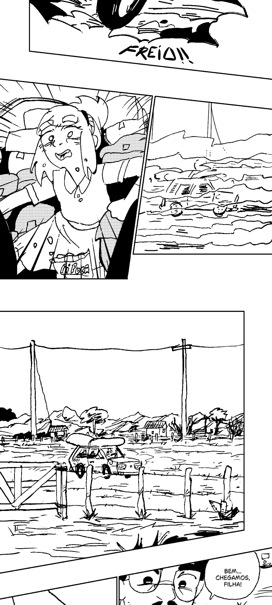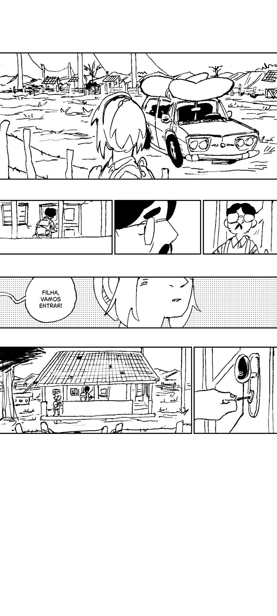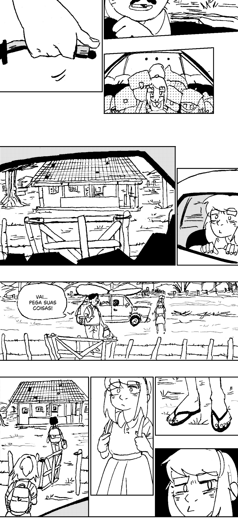 O pai de Joana chega no local que disse que eles iriam viajar.