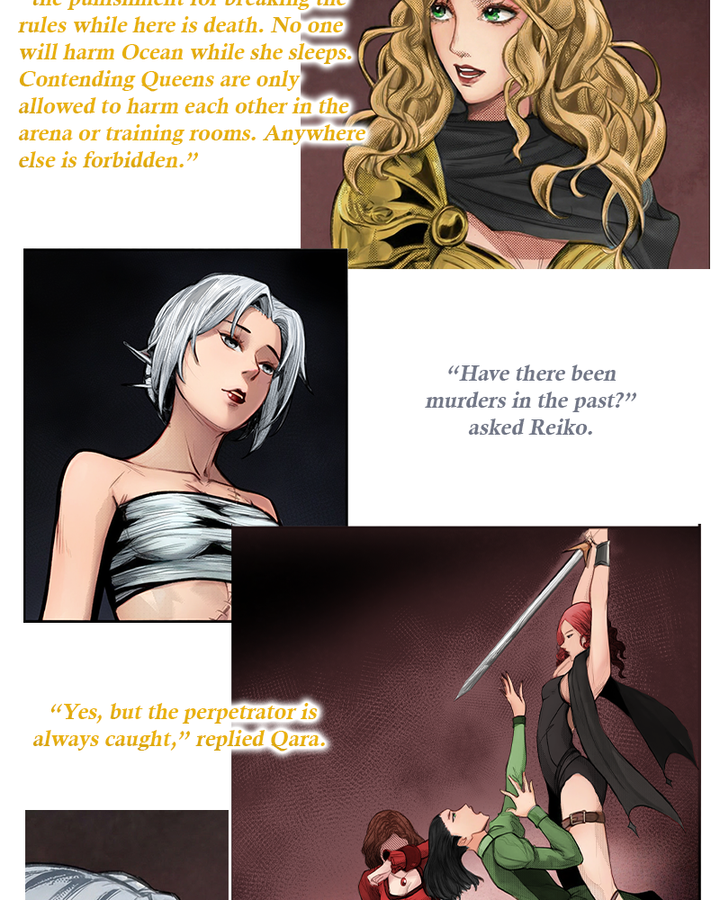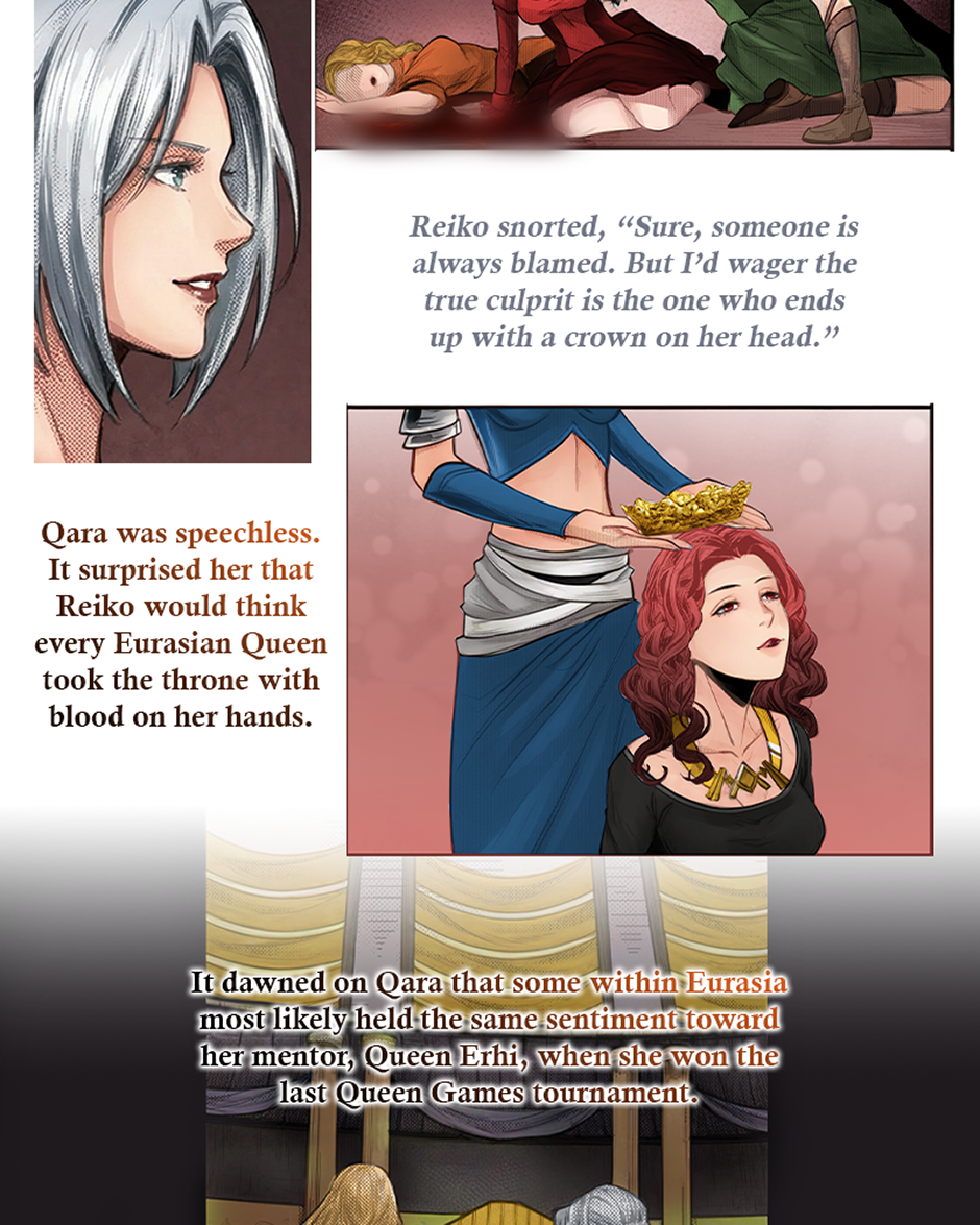 However, Qara and the Prince must navigate sabotage, betrayal, and shifting political alliances in order for her to survive and win the Queen Games. This includes allying with a ferocious female Samurai.