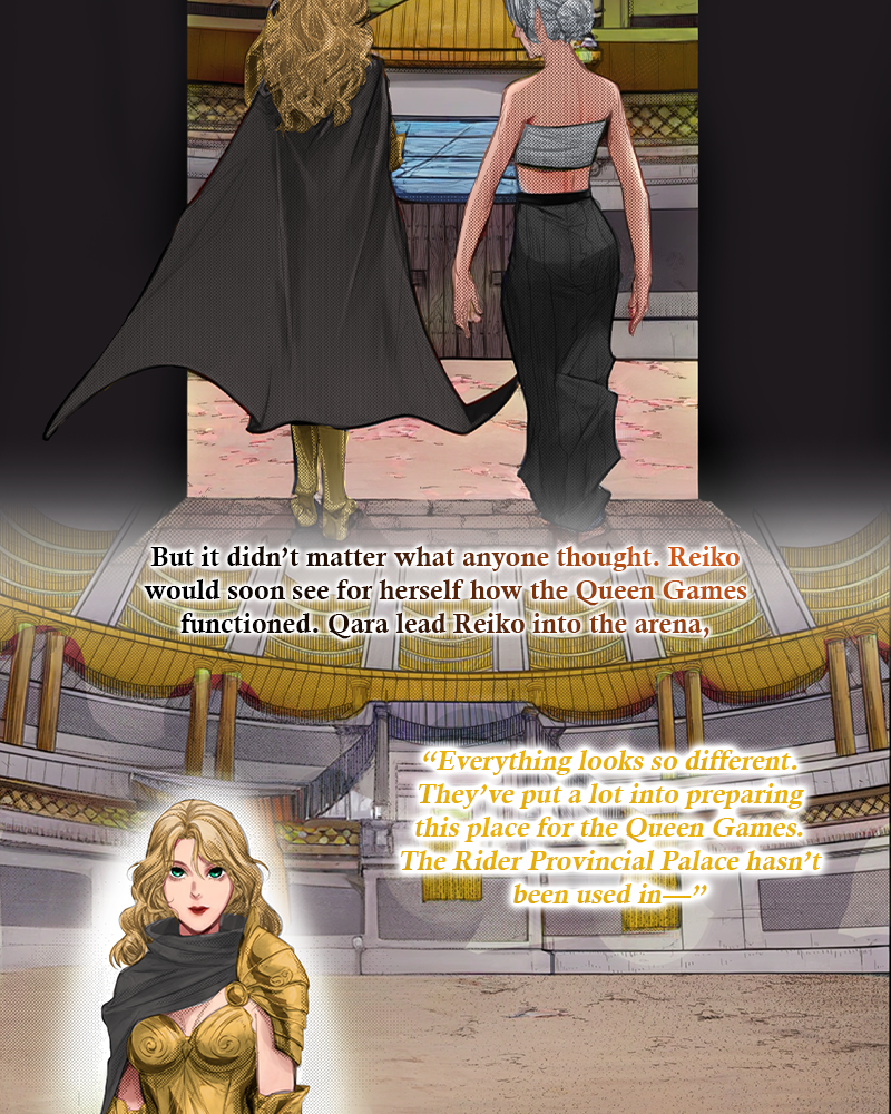 At the same time, the Prince is supposed to be impartial to the competitors vying to become his Queen. However, upon learning that Qara has been chosen, he reveals that she is the one he has always wanted to marry. Unfortunately, precedence dictates the Prince does not get to decide his future wife, it has and will always be determined by the prestigious Queen Games tournament. Shocked by this unexpected but deeply desired revelation, Qara reciprocates his affections. Now, the two secretly conspire to secure her victory, not because they want to be King and Queen, but because it’s the only way for them to be together.