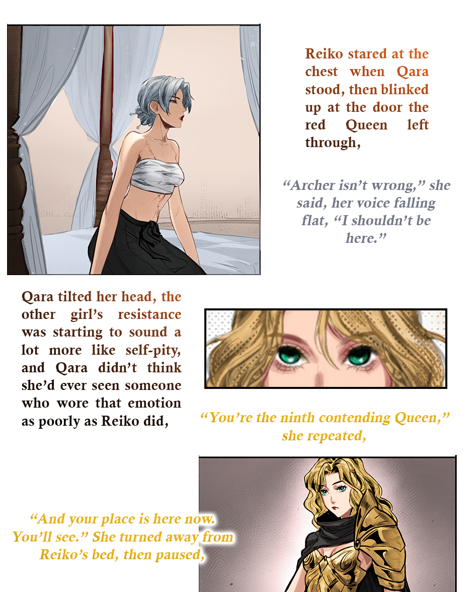 At the same time, the Prince is supposed to be impartial to the competitors vying to become his Queen. However, upon learning that Qara has been chosen, he reveals that she is the one he has always wanted to marry. Unfortunately, precedence dictates the Prince does not get to decide his future wife, it has and will always be determined by the prestigious Queen Games tournament. Shocked by this unexpected but deeply desired revelation, Qara reciprocates his affections. Now, the two secretly conspire to secure her victory, not because they want to be King and Queen, but because it’s the only way for them to be together.