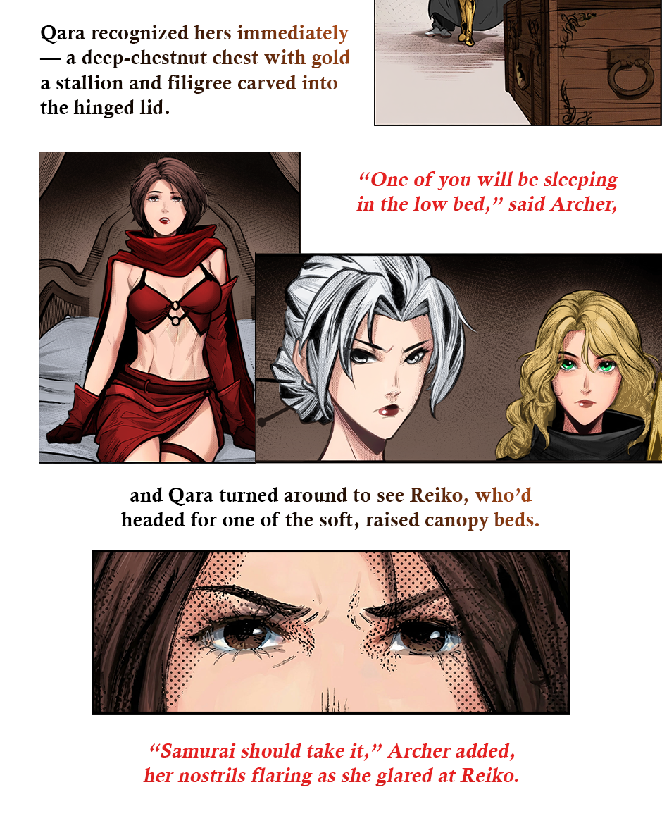However, Qara and the Prince must navigate sabotage, betrayal, and shifting political alliances in order for her to survive and win the Queen Games. This includes allying with a ferocious female Samurai.