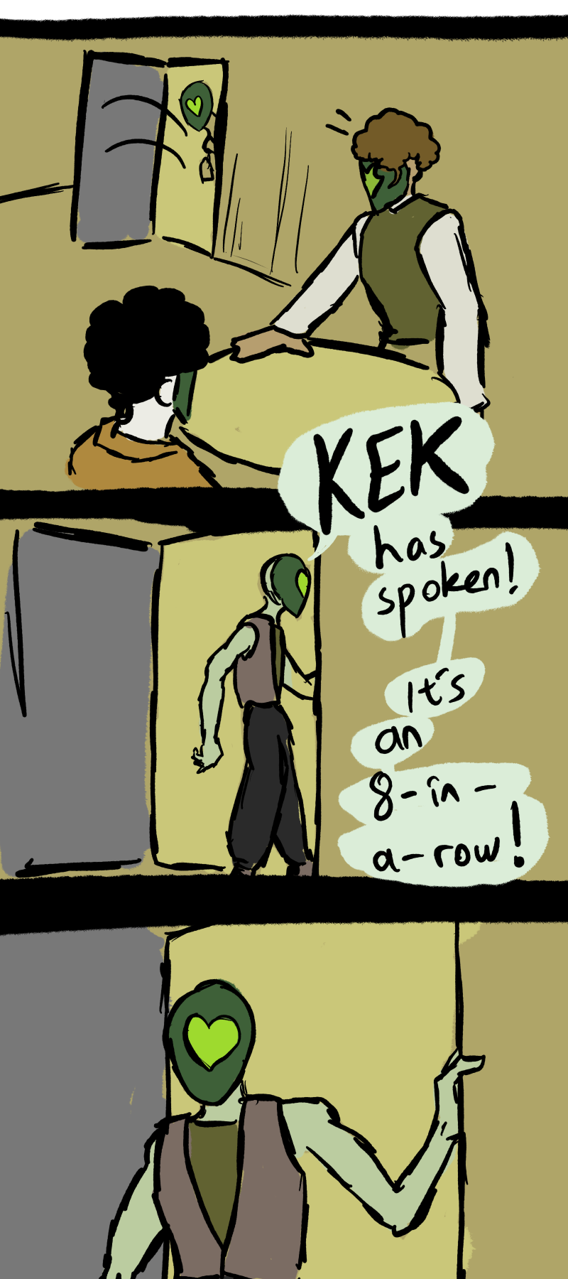 Dubs, in truth refers to the last two numbers in a 4chan post id repeating, the joke is that replies with these id’s are special or, as was in /pol/‘s case, blessed by Kek. Same logic for trips and quads.