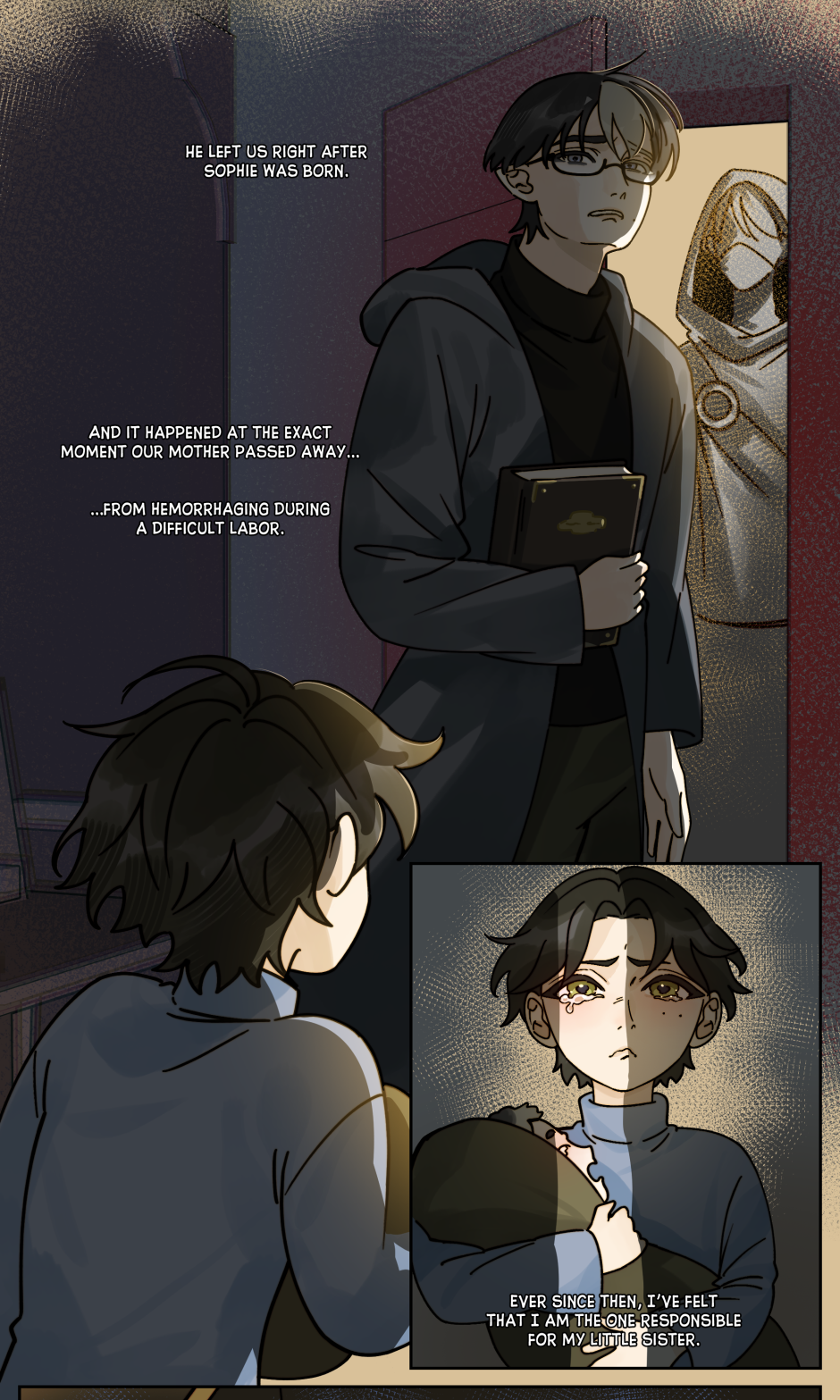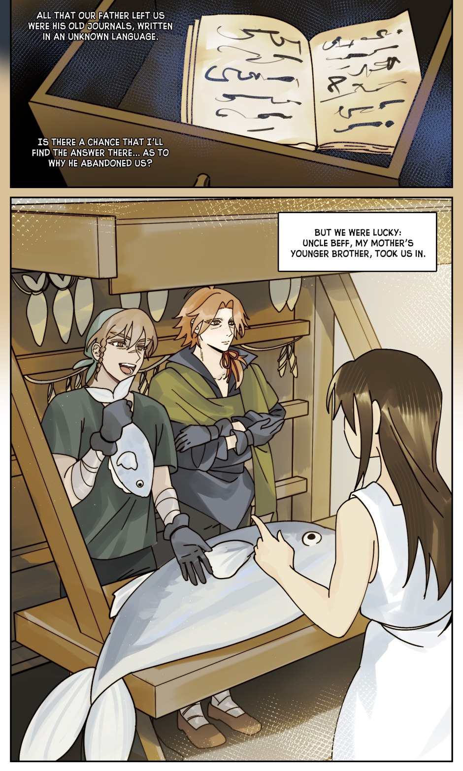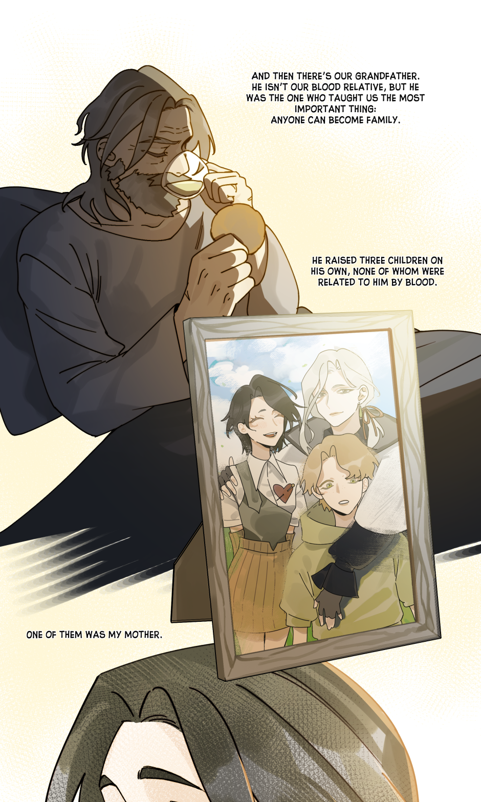 That’s really sad, but the look on his fathers face and the person outside the door, as well as the journal, makes me think there’s more to that story. And if not then the dad was just an ass. I’m glad they found some family again later though 💗
