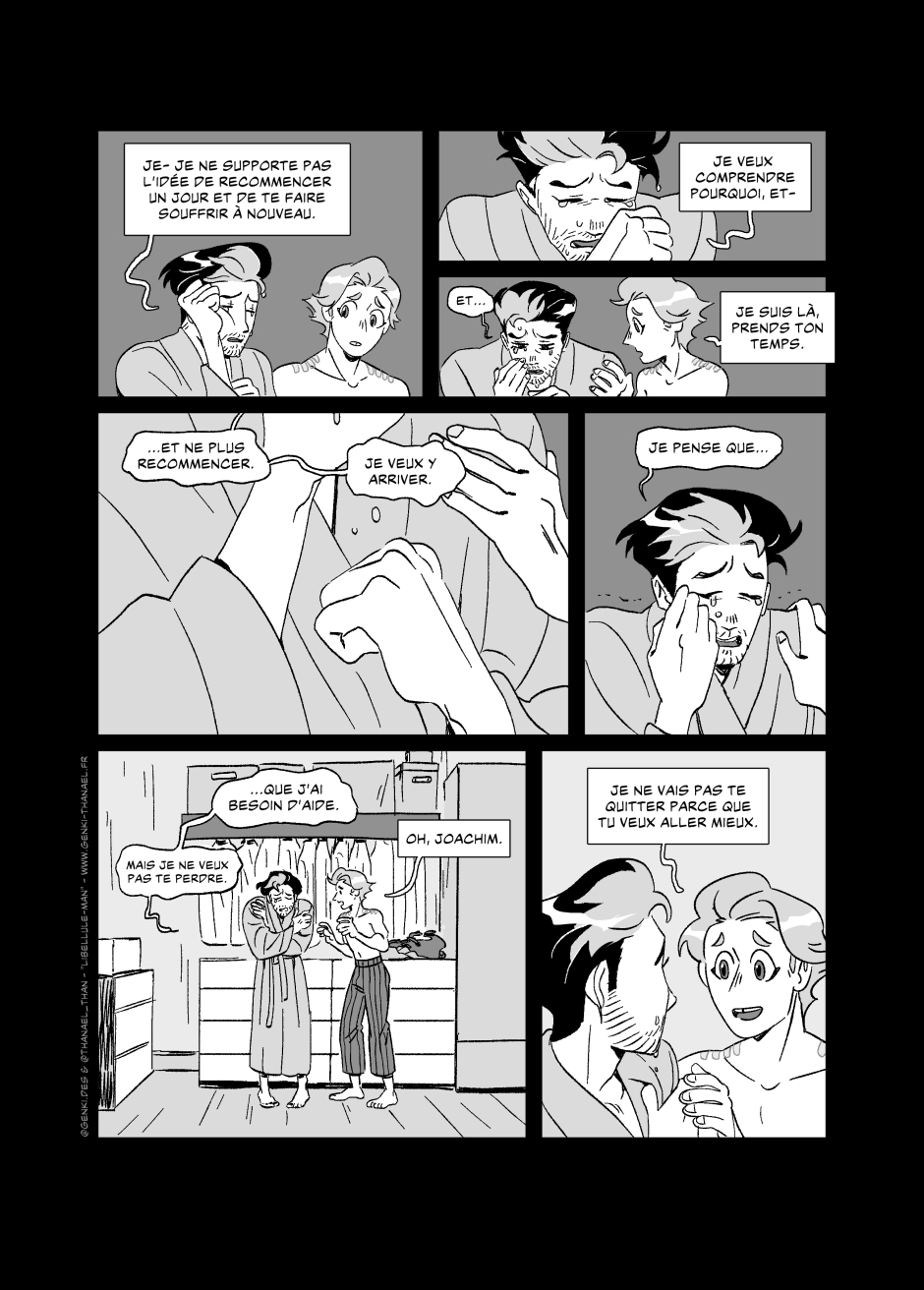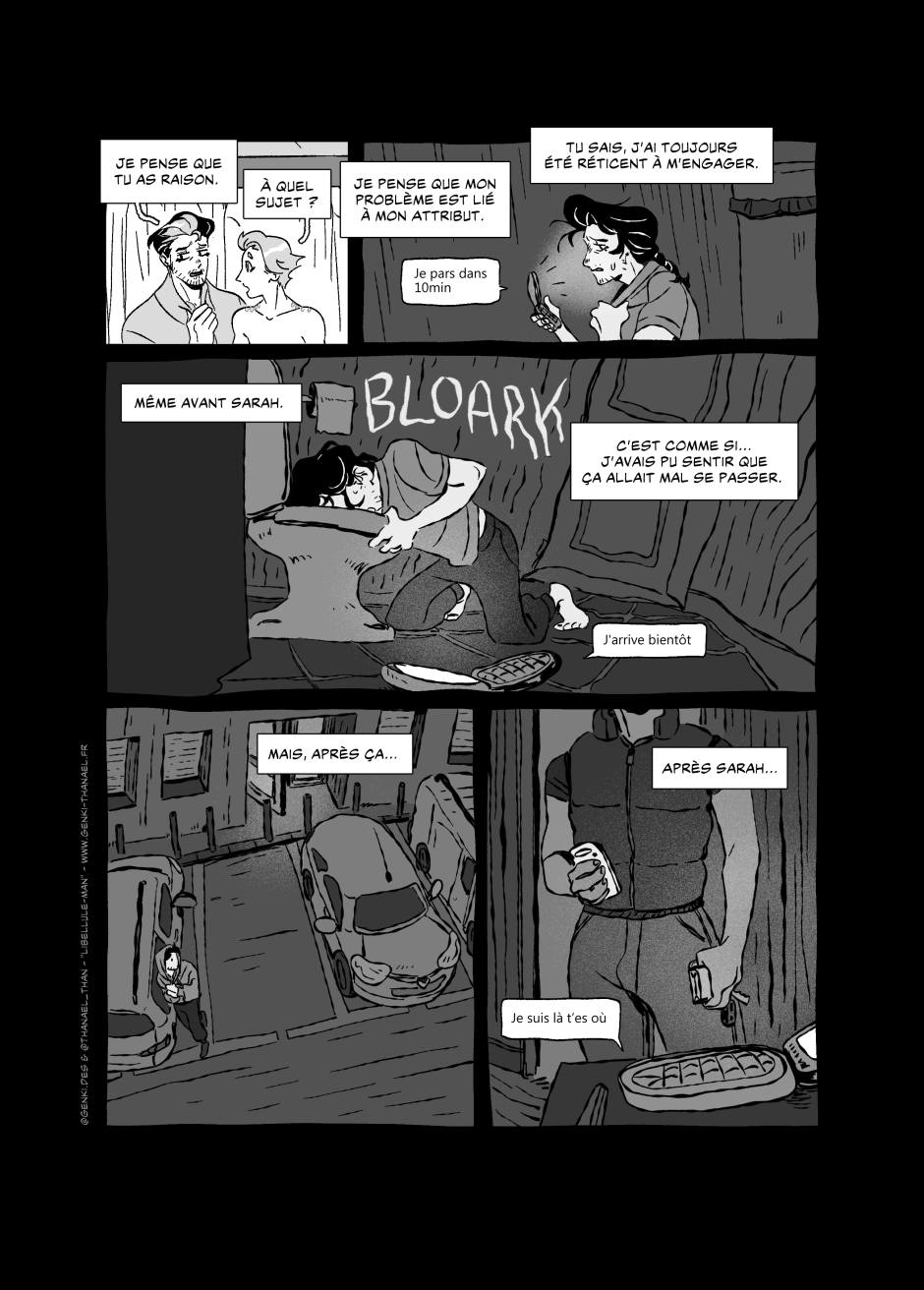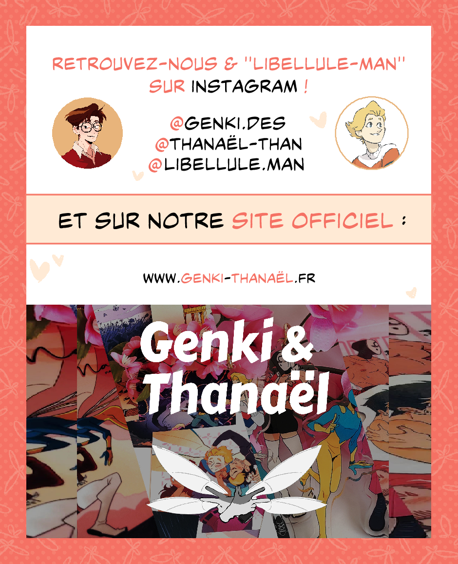 Merci pour votre bienveillance et patience, en convention, en message, en commentaire, en like et en tout ! À bientôt pour le chapitre 8, et si le cœur vous en dit, dans nos autres Bds : « La Mémoire de Sage » Tome 1, disponible en librairie dès le 30 janviers (Éditions de la Gouttière), et « La Robe des Gardes » à venir aux horizons 2027 (Édition Delcourt) ♥