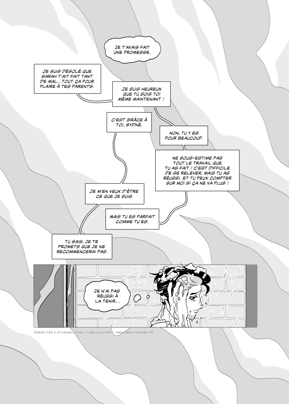 Comme nous travaillons sur plusieurs BDs à venir en ce moment, c’est assez difficile au début de trouver un équilibre pour continuer « Libellule-man » rapidement ! Nous sommes en train d’essayer plusieurs façon d’équilibrer toutes nos BDs en cours, et pas d’inquiétude, nous n’abandonnons pas la suite des aventures de Sydnè, Joachim et maintenant Malyo!♥ (Plusieurs autres chapitre à venir sont déjà storyboardés!!)