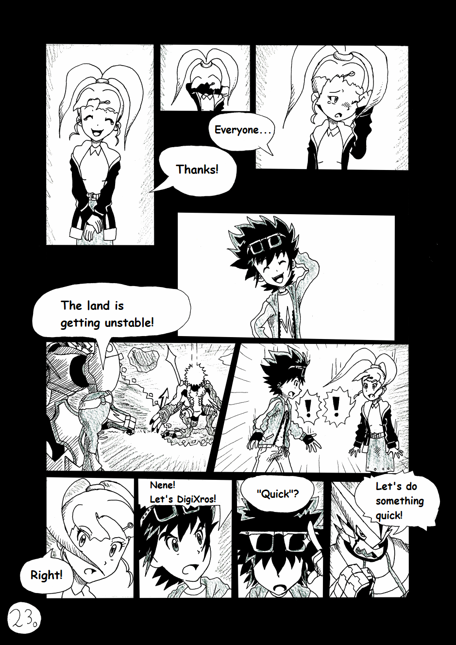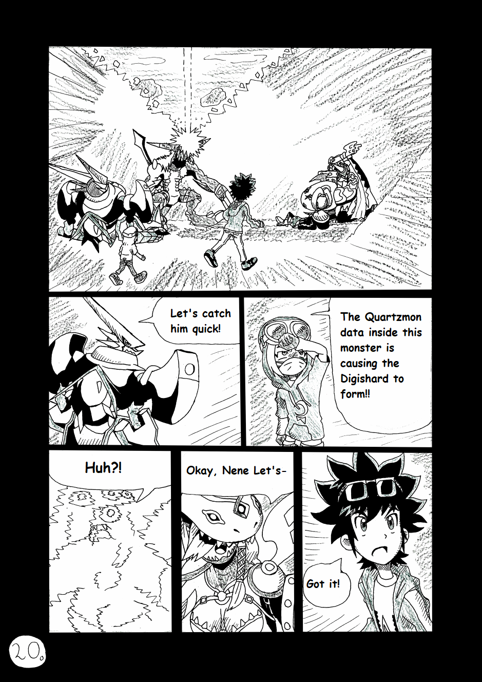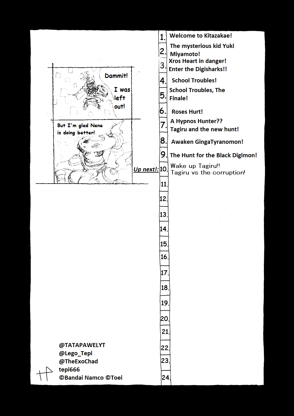 Its a fan continuation to Digimon Xros Wars Young Hunters Who Lept Throught Time. It takes place over a month later after the battle with Quartzmon. Tagiru and the others find out that Quartzmon is somehow still alive and now they have to hunt the digimons that cause his return. Alongside them they meet mysterious kid Yuki Miyamoto, an 11 year old carrying a brand new Xros Loader called "Super Loader". They also have to stop the evil team called "Digi-sharks" who use digimon in a illegal way.