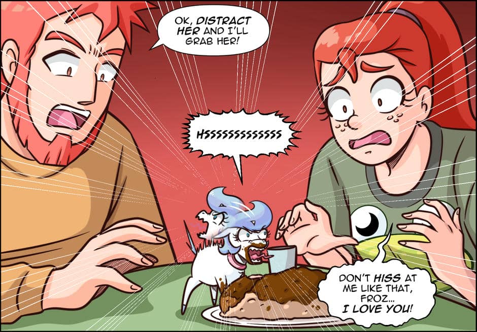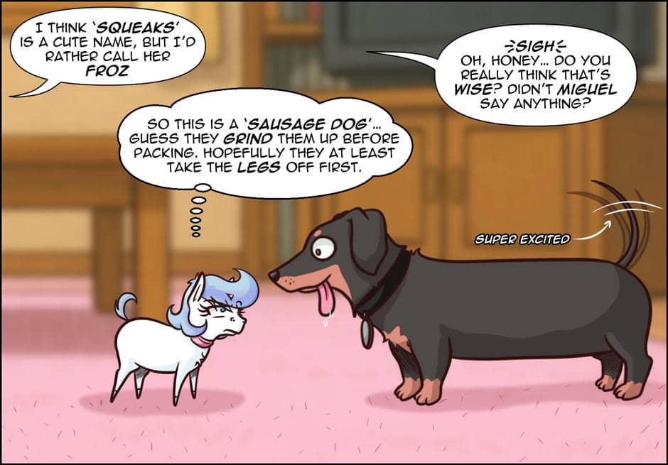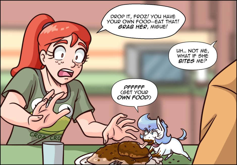 Tiny Froz enjoys a cozy pet life—biting sausages that aren’t sausages and discovering new foods—while Ana and Miguel learn that some herbivores aren’t that strict about their diets. Meanwhile, Horse Gorse, the Equine Beast, realizes that being strong and heavy has its downsides… like sinking instead of swimming.